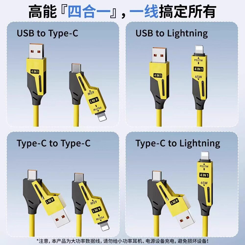 全兼容快充65w四合一弹簧伸缩数据线适用华为闪充typec安卓苹果PD车载Carplay投屏线usb笔记本iPhone16充电器