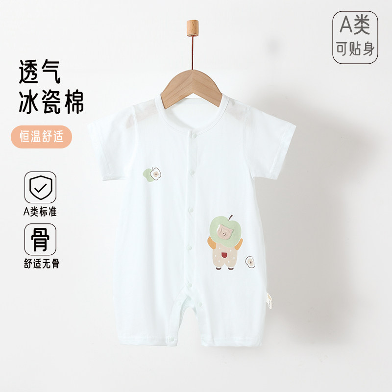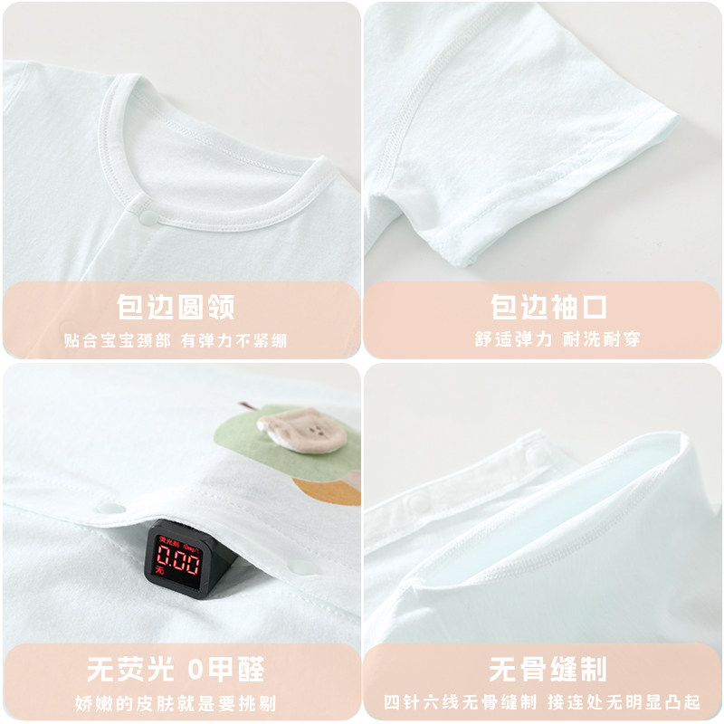 婧麒新生婴儿衣服夏季纯棉连体衣薄款夏天宝宝空调服睡衣短袖哈衣