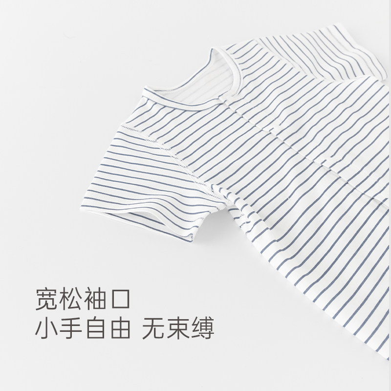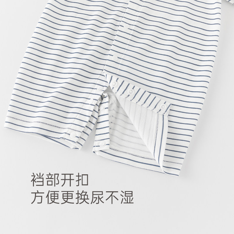 木生棉男女宝宝短袖连体衣夏季薄款婴儿纯棉透气哈衣条纹休闲爬服