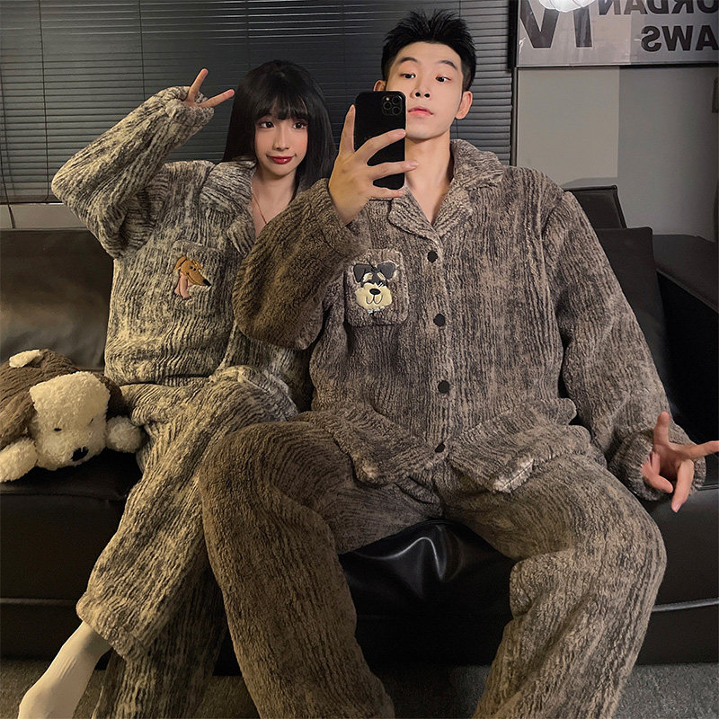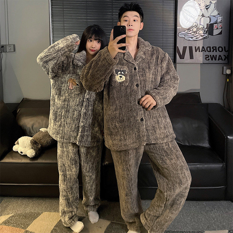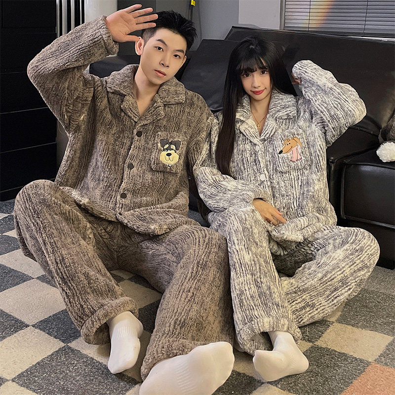 珊瑚绒情侣睡衣秋冬季加绒加厚保暖卡通一男一女冬天可外穿家居服