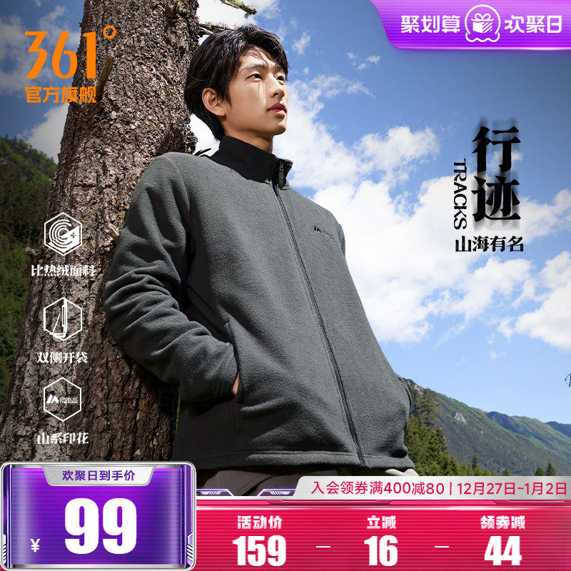 361运动男装2025秋季新款针织加绒运动外套男立领摇粒绒保暖夹克
