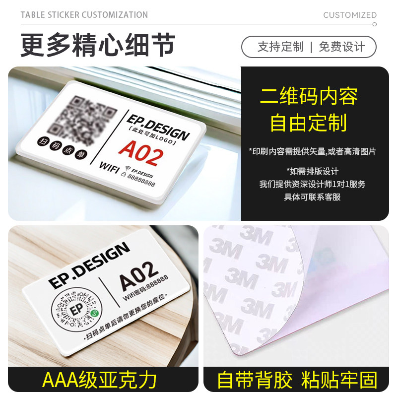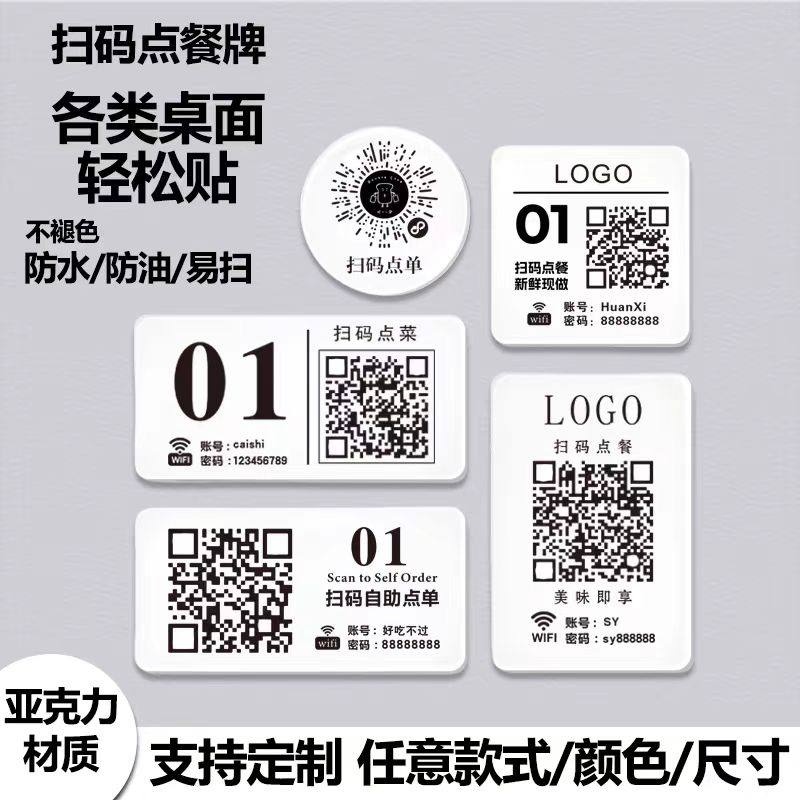 定制扫码点餐二维码亚克力桌贴牌点餐码下单餐桌牌扫一扫点菜牌子