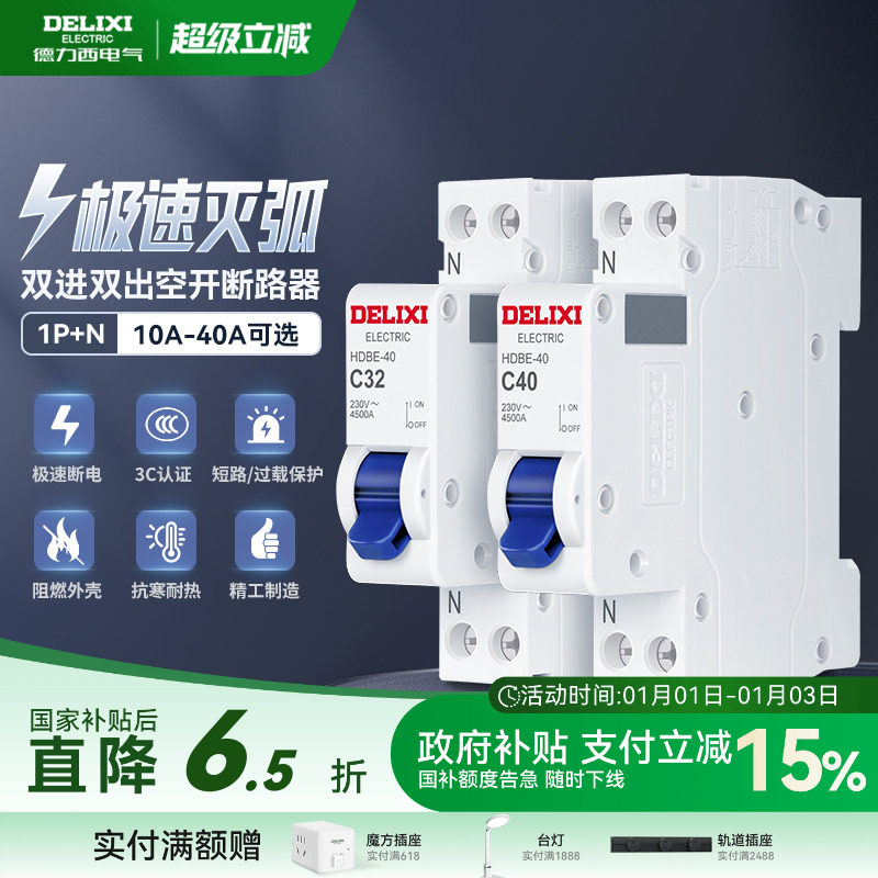德力西断路器1P+N相线+中性线双进双出短路保护空开双线空气开关