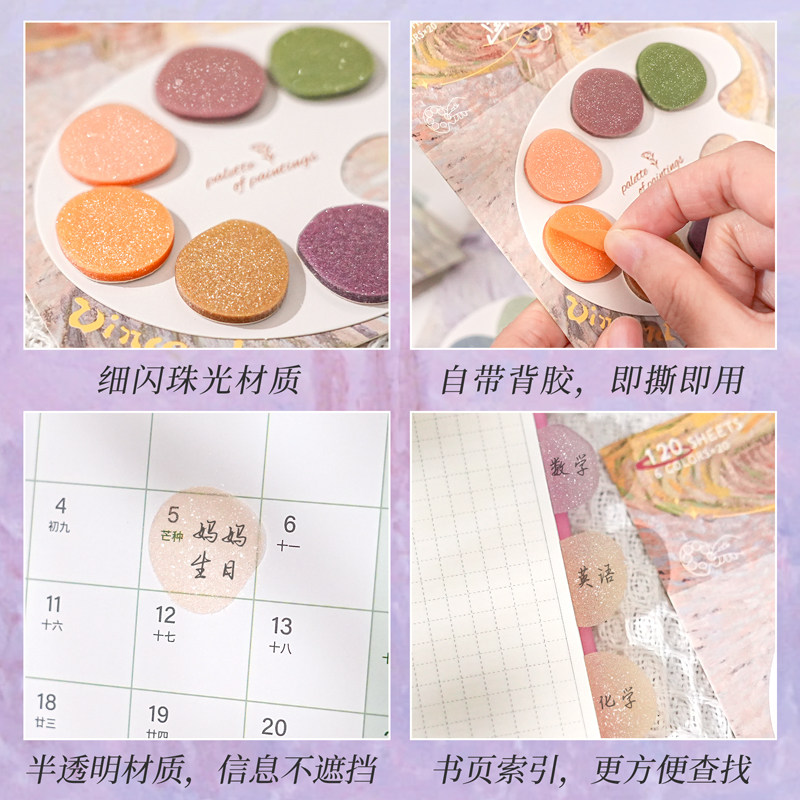 珠光渐变便利贴彩色记号贴透明磨砂重点标记索引贴有粘性可书写手帐贴纸学生文具初中生专用高颜值便签记事贴