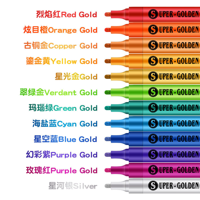 超级金属色马克笔18色模型工具高达机甲大班笔涂上色补色手办涂装彩色学生用手绘diy相册黑卡陶瓷玻璃笔涂鸦
