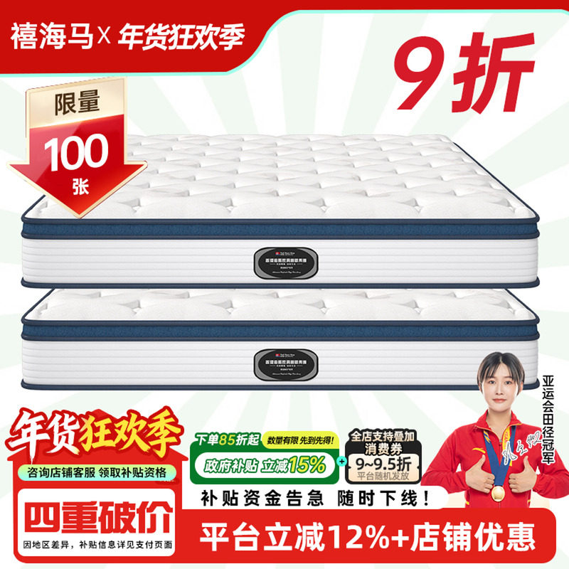 【国补15%】禧海马正品乳胶20厚床垫1.5M 1.8米椰棕独立弹簧床垫