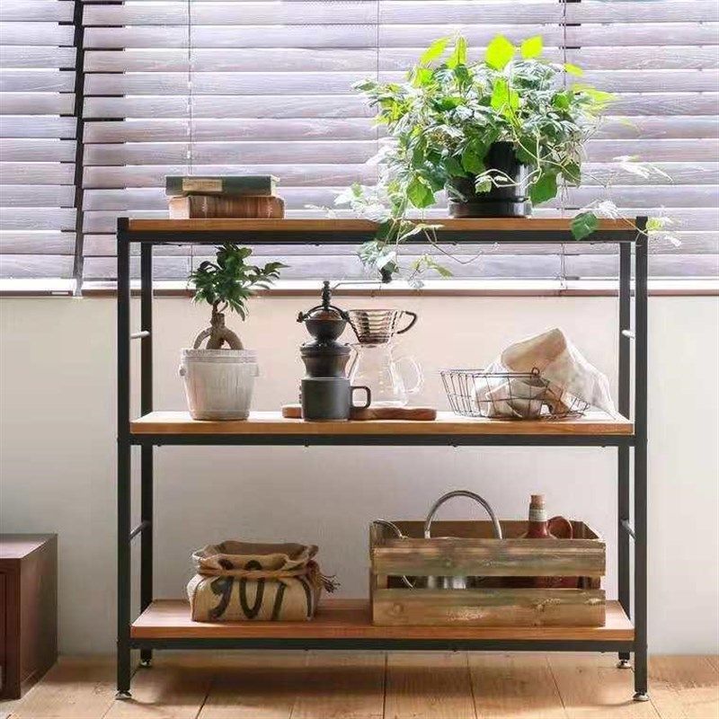 北欧铁艺置物架复古陈列架实木隔板展示架落地书柜厨房多层收纳架