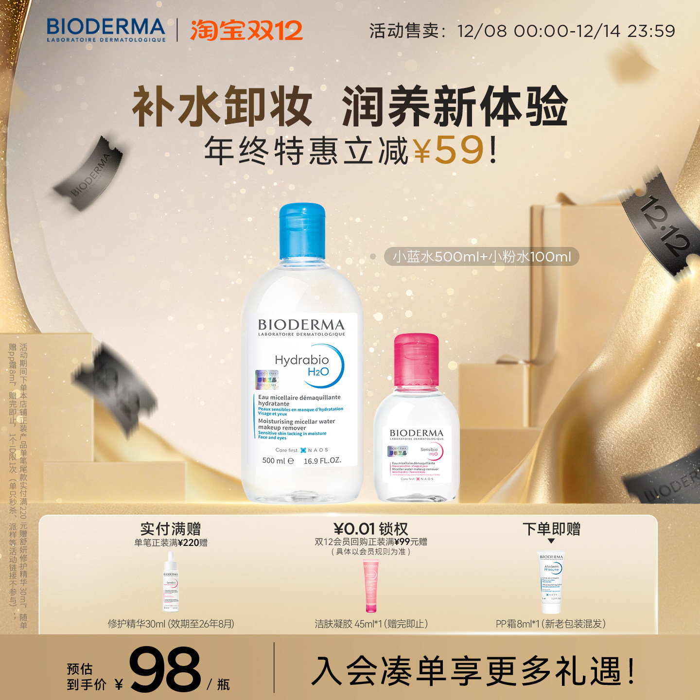 贝德玛粉水敏感肌温和洗卸不伤肤成分精简水润清爽家用卸妆水