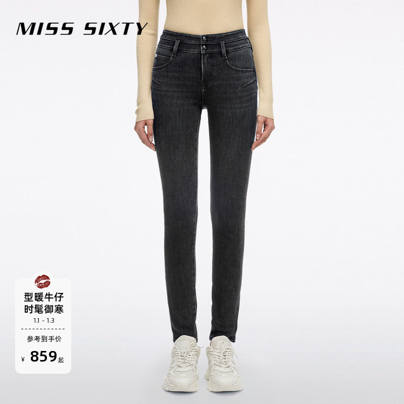 【保暖含羊绒】Miss Sixty2025冬季新款牛仔裤女显瘦小脚铅笔裤