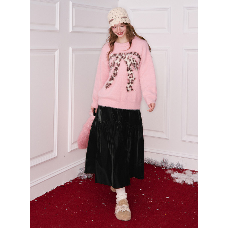 BANANA BABY2025年秋冬新款提花针织女日系碎花雪纺长款半身裙