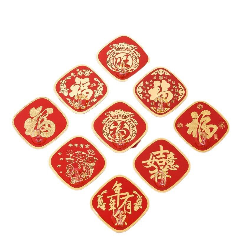 中国红色福字挂钩新年粘钩打孔无痕结婚钩子粘胶喜庆墙上宿舍强力