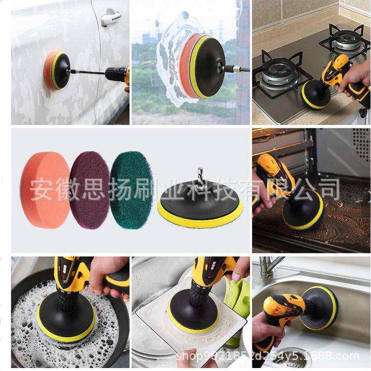 跨境货源电钻圆盘刷手持钻头厨房清洁除尘刷电钻刷地毯清洗刷套装