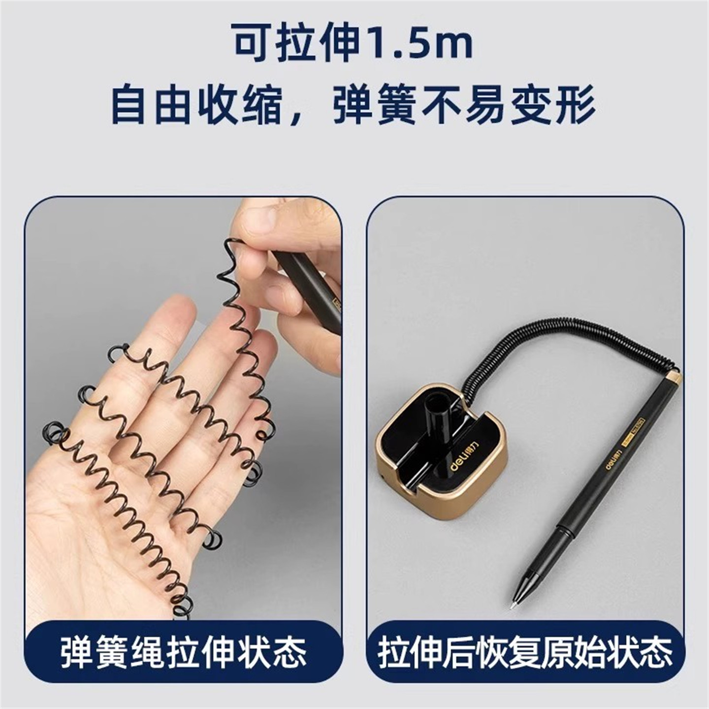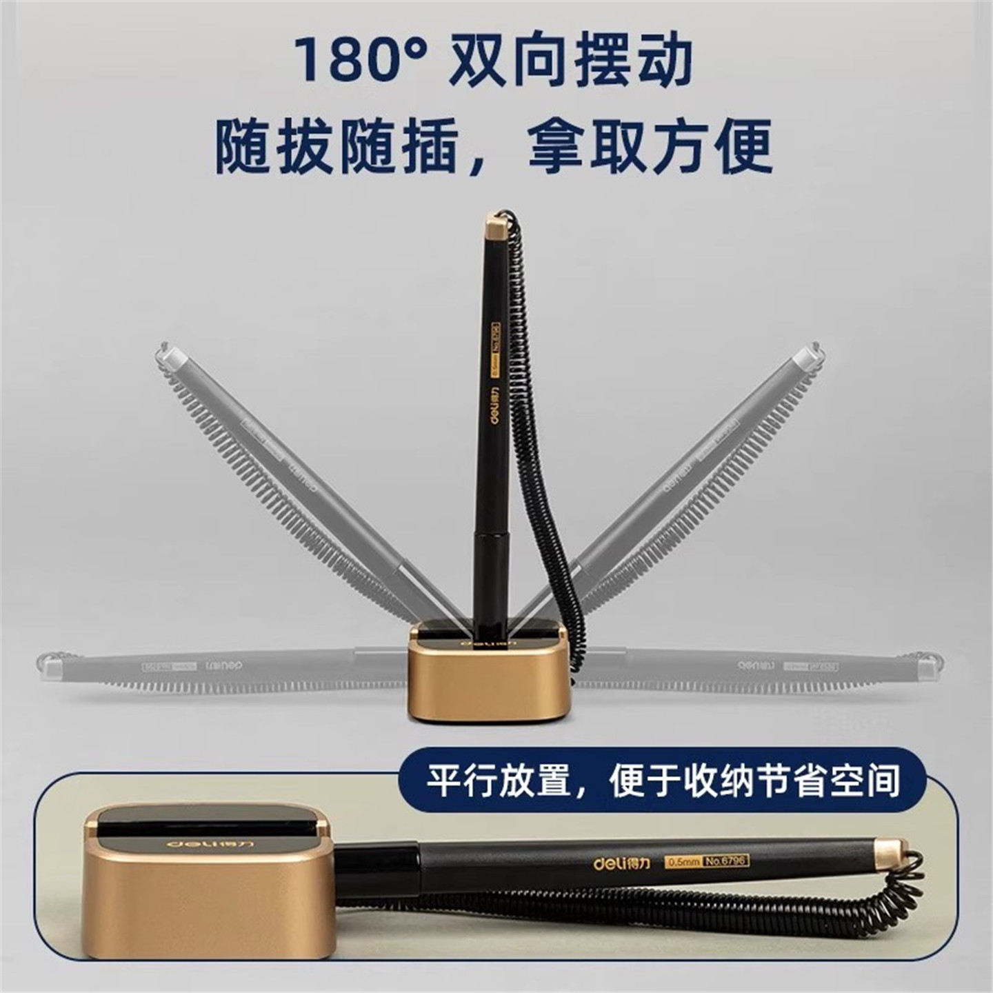 得力台笔银行酒店桌面台式签名笔前台防丢固定签字笔笑脸带线笔座