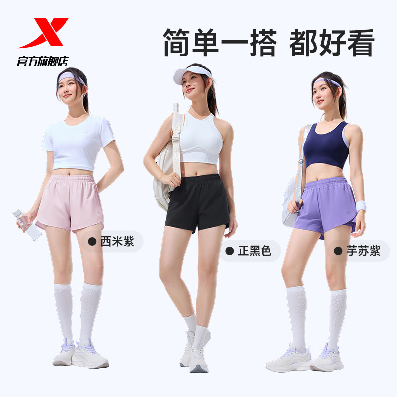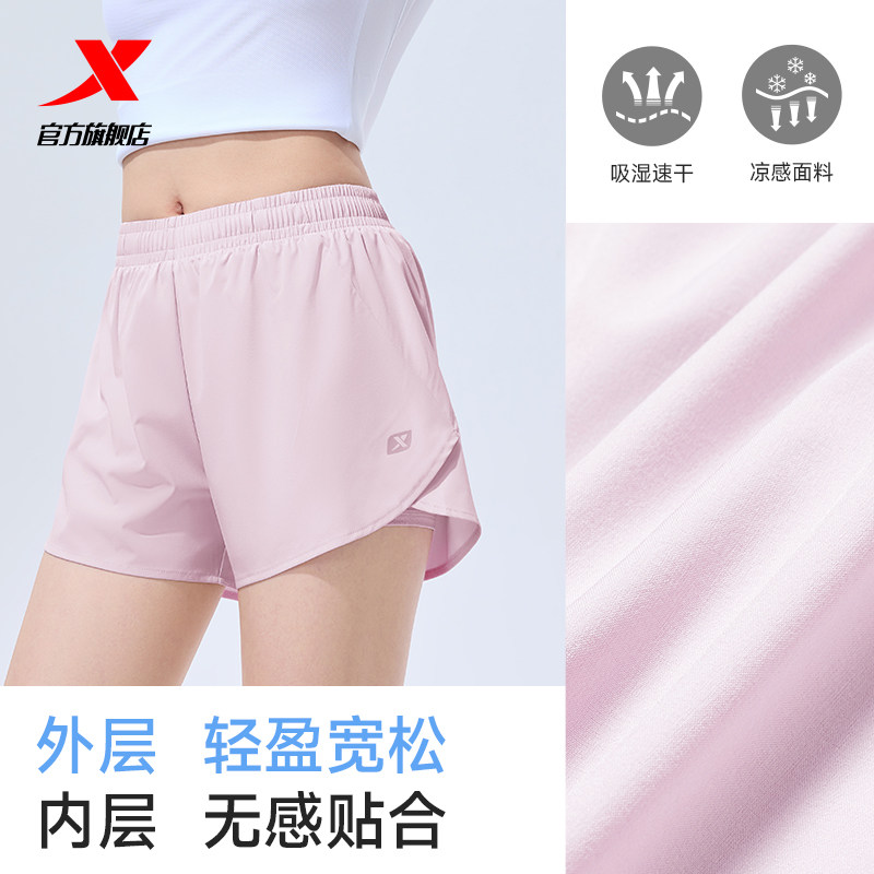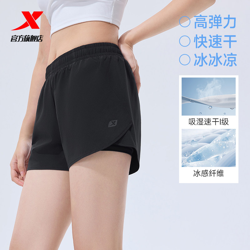 特步运动短裤女2025夏季冰丝速干防走光内衬运动短裤女跑步裤子女