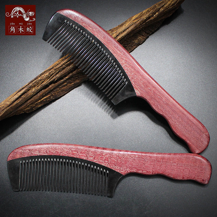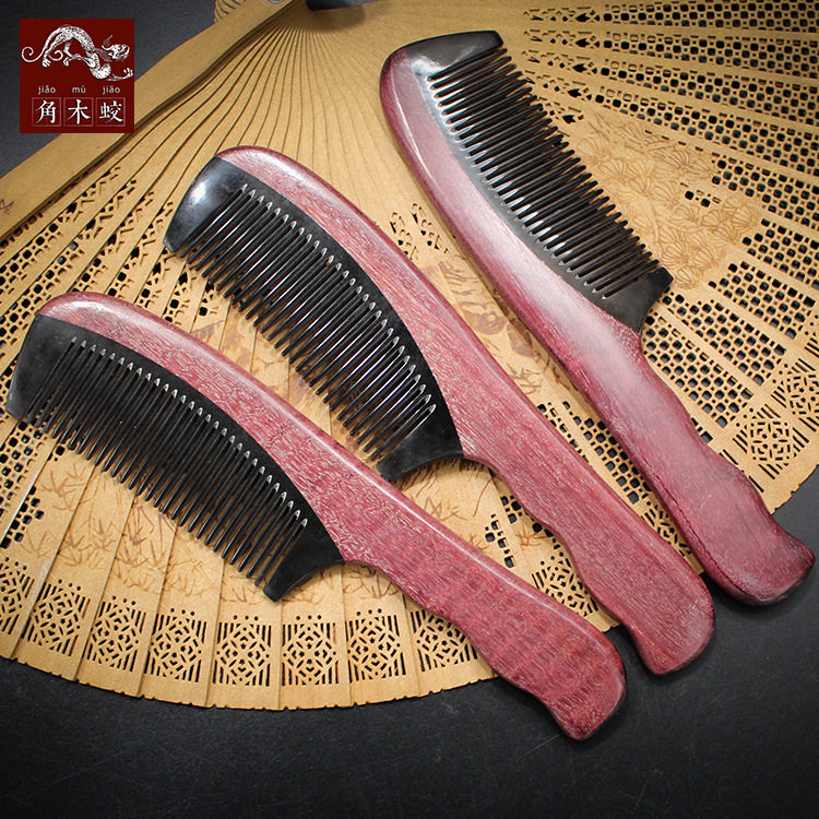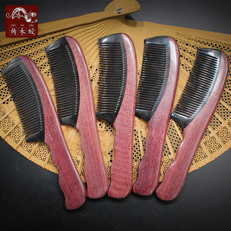 厂家批发角木蛟紫心木梳子 水牛角梳按摩美发梳
