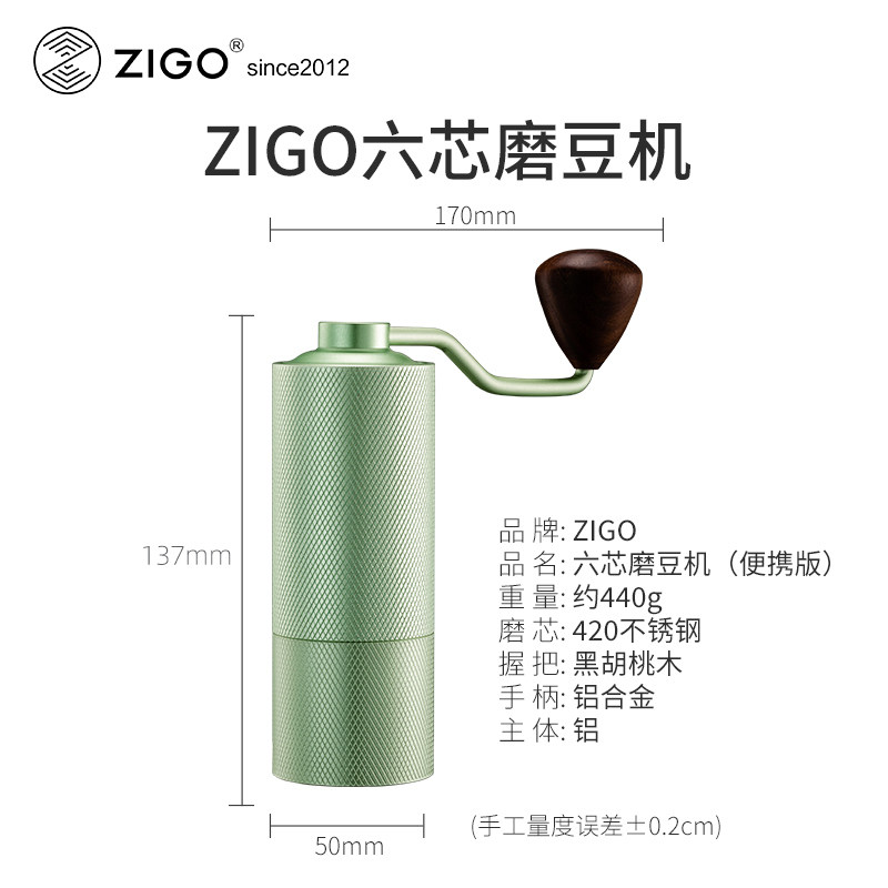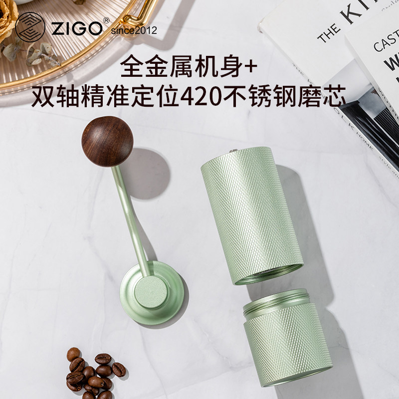 zigo手摇咖啡磨豆机手磨咖啡机家用便携式小型CNC6芯咖啡豆研磨机