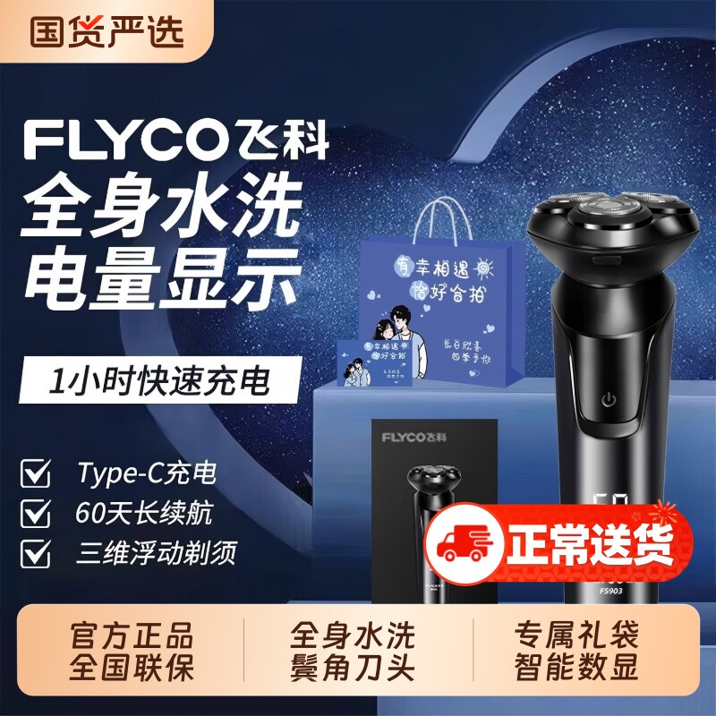 Flyco/飞科电动剃须刀男士刮胡刀三刀头快充903正品新款浮动鼻毛