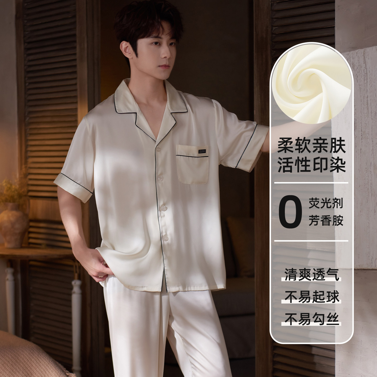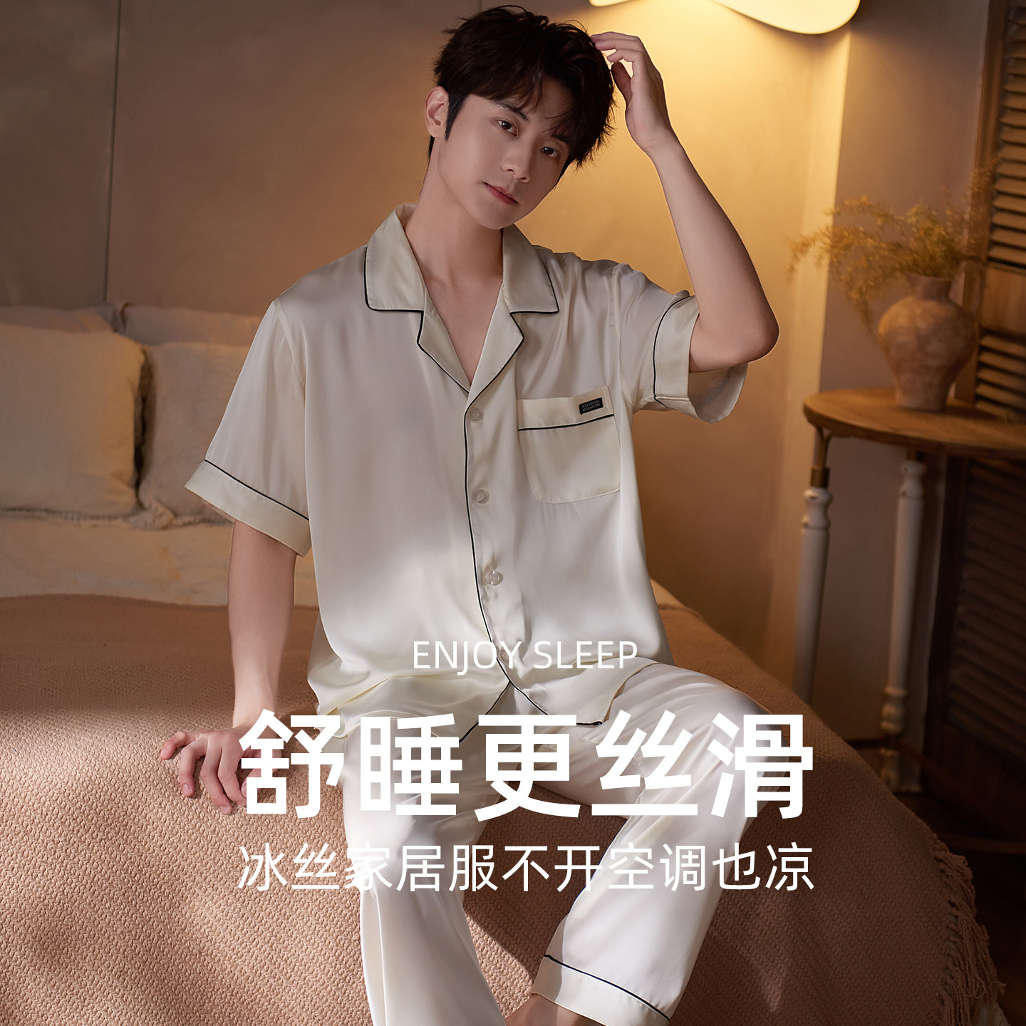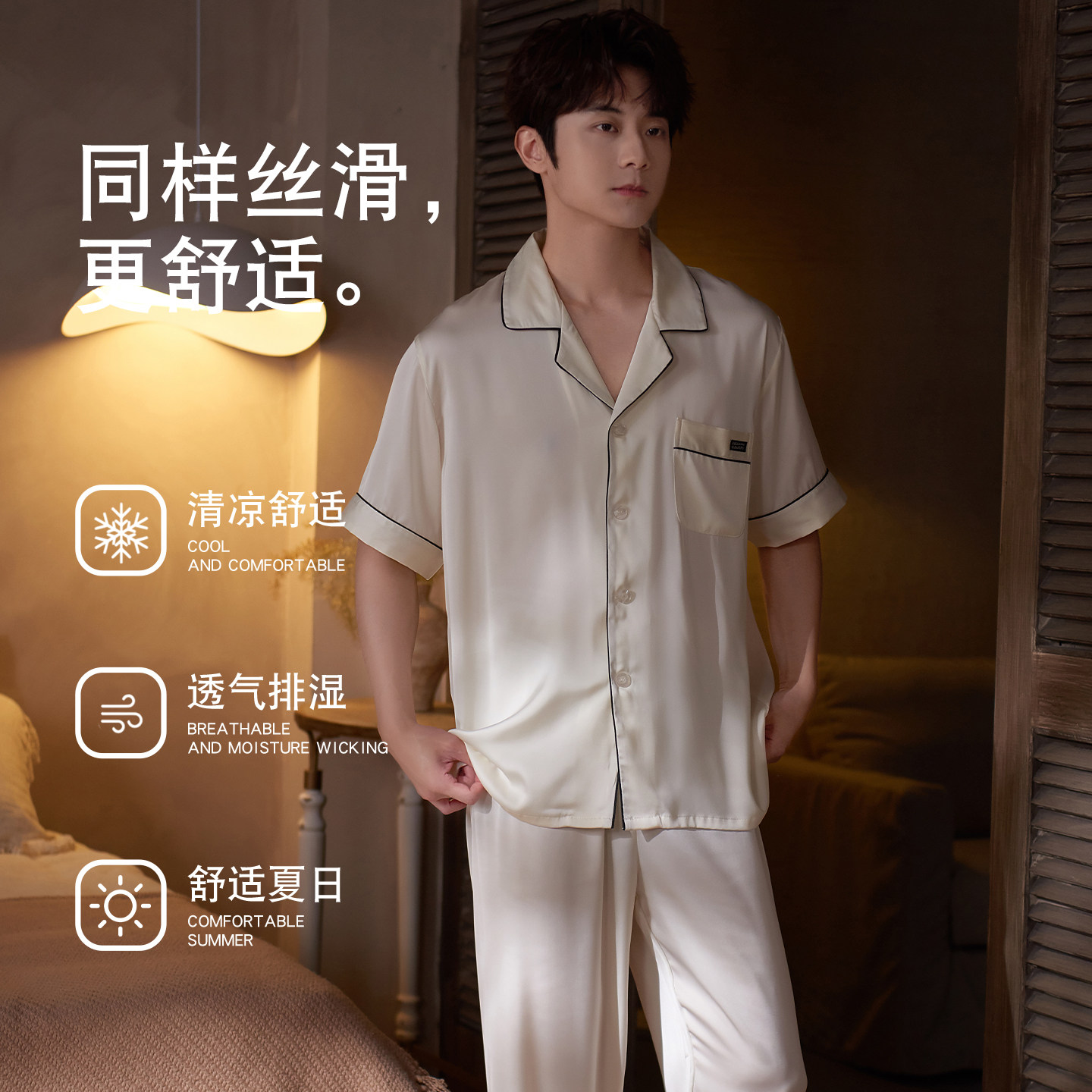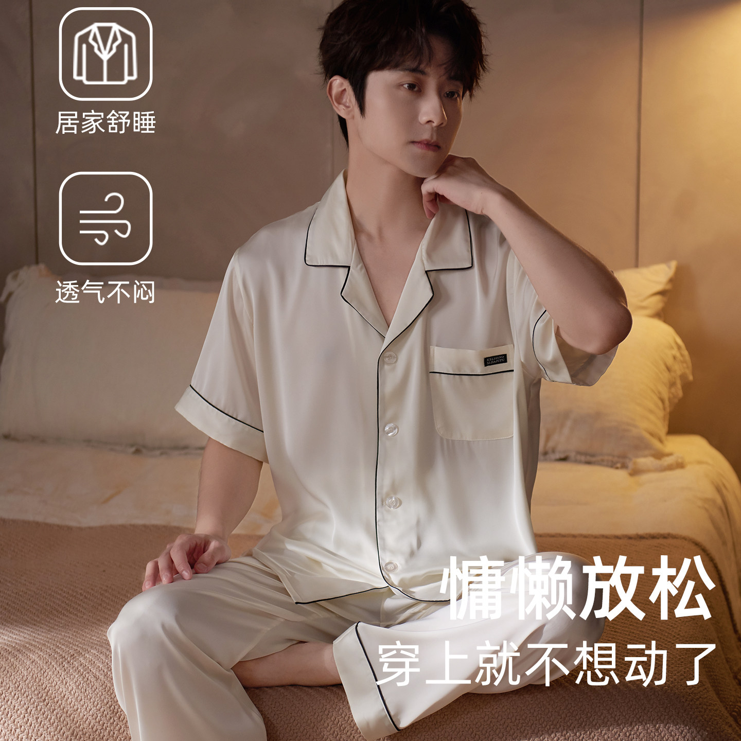 乐姿梦睡衣男士春夏季丝绸冰丝凉感短袖长裤仿真丝质居服男款夏天