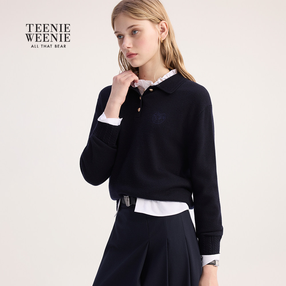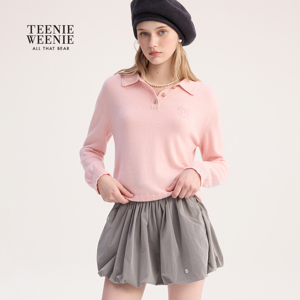 【可机洗四季针织】TeenieWeenie小熊女绵羊毛衣25冬miu系针织衫