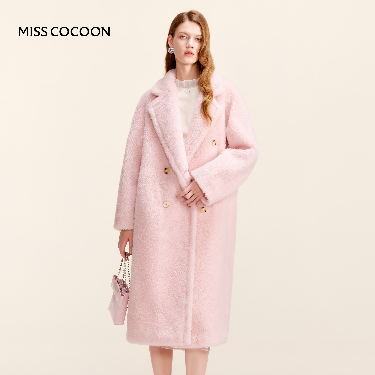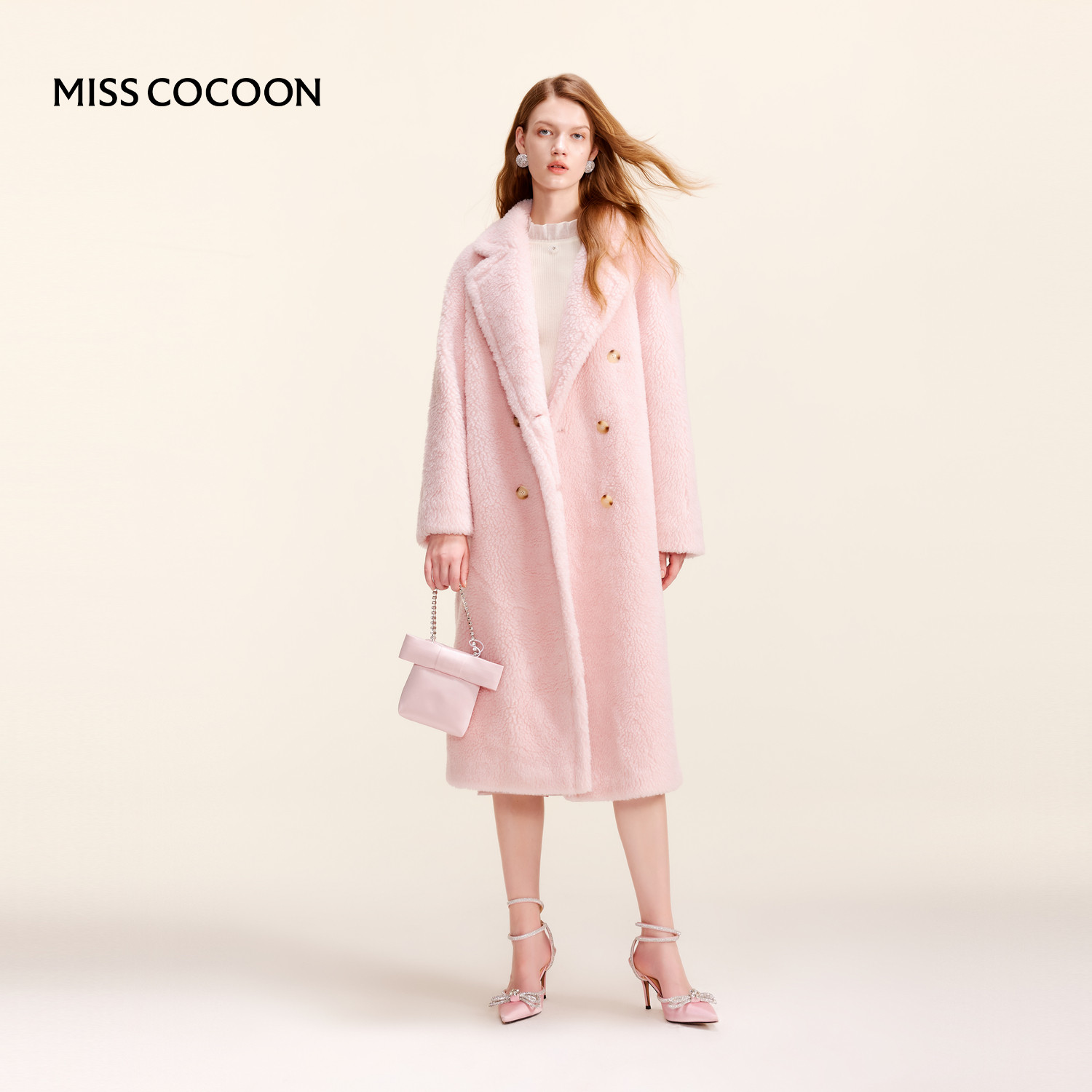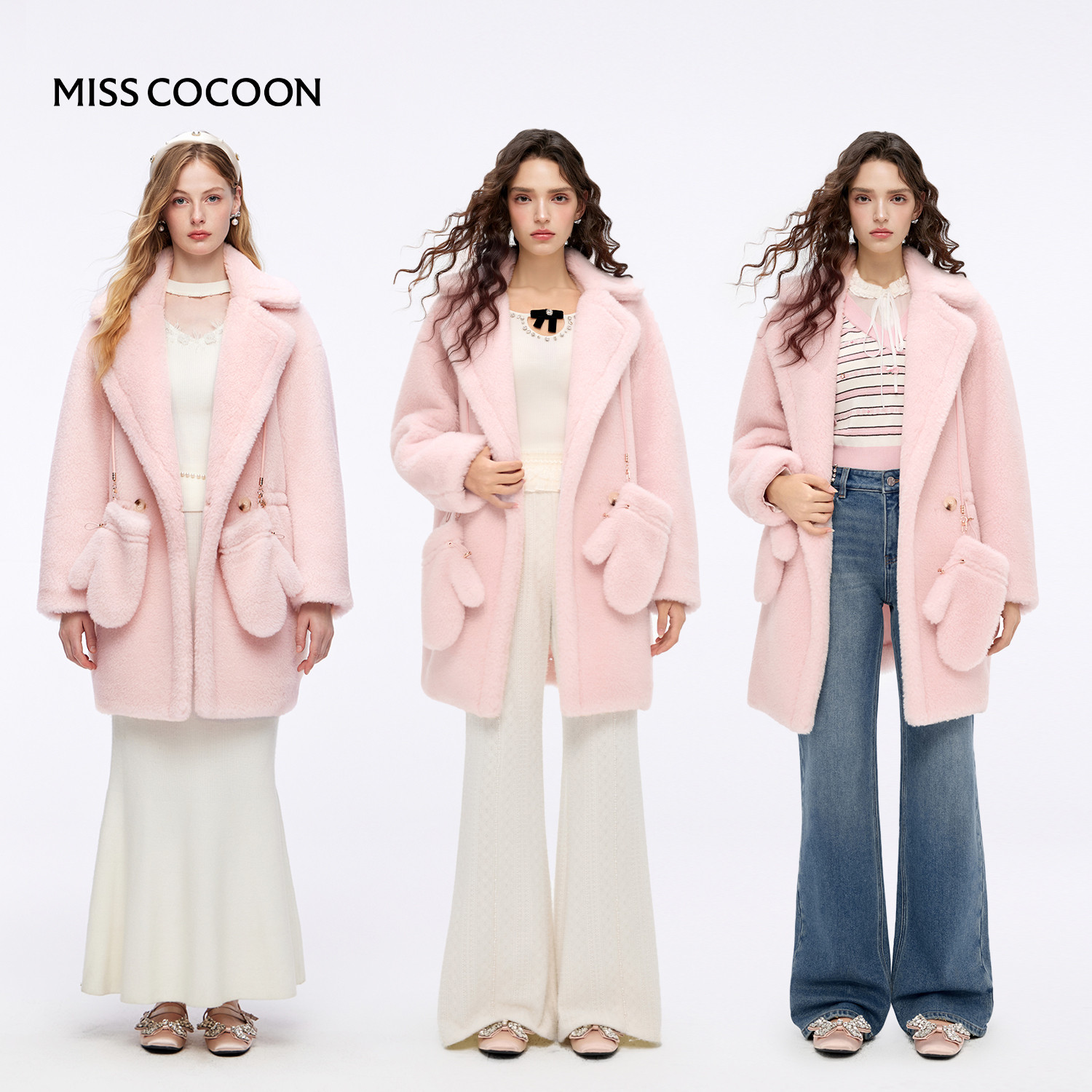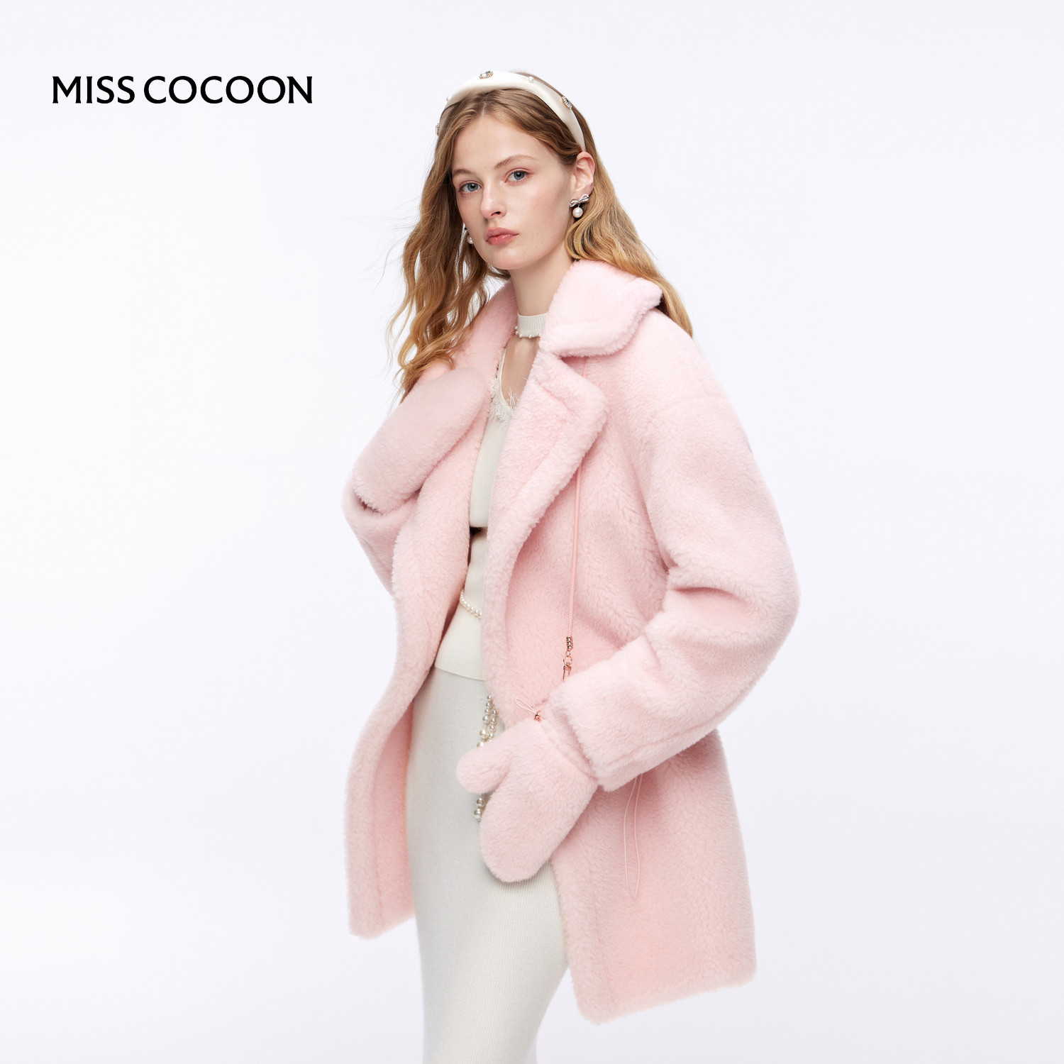MISSCOCOON可可尼粉色毛毛外套女2025冬季新款收腰圣诞皮草大衣