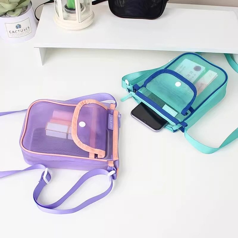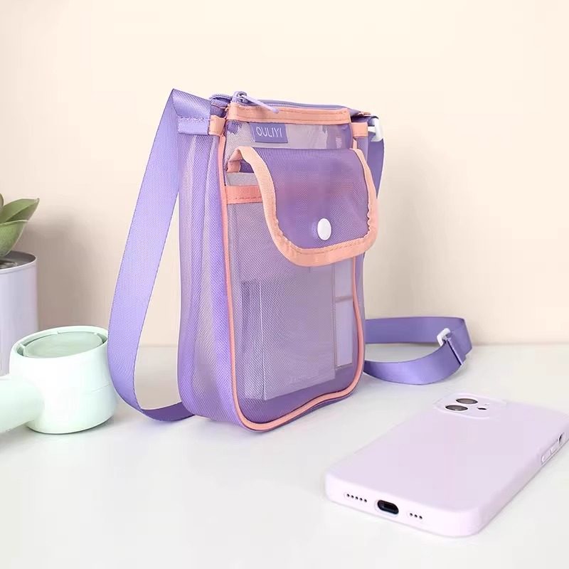 欧力益手机包网纱女斜挎包可爱小包单肩便携翻盖收纳袋拉链竖版