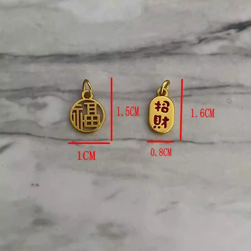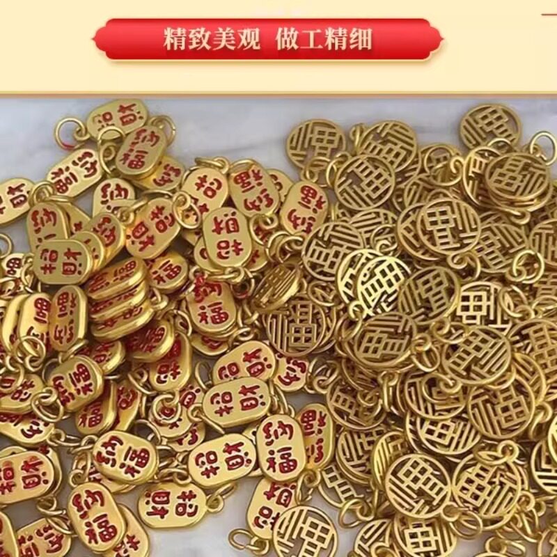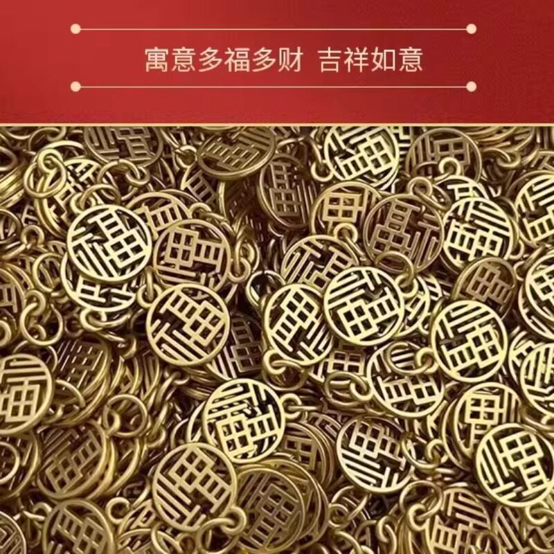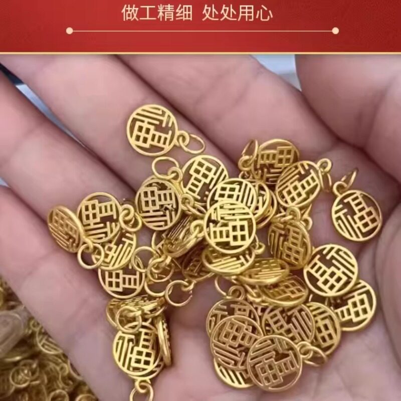 古法沙金新年配饰福字招财纳福钱吊坠DIY串手链项链配件镂空合金