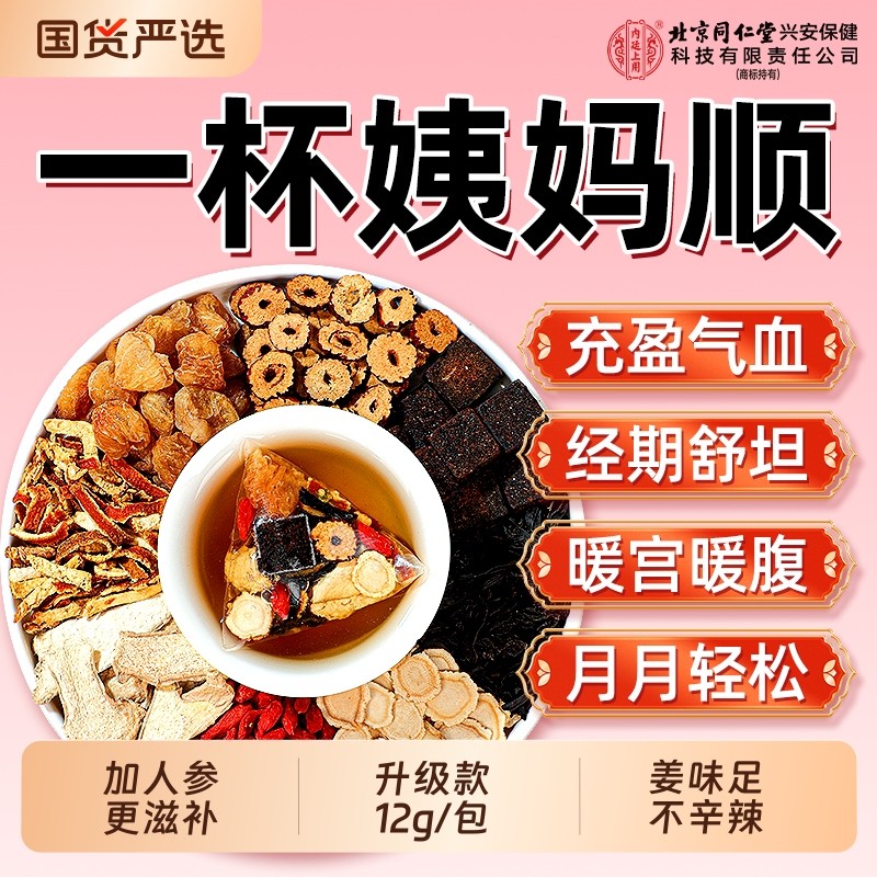 同仁堂红糖姜茶大姨妈宫寒调理红枣桂圆枸杞补气养血女人养生茶包