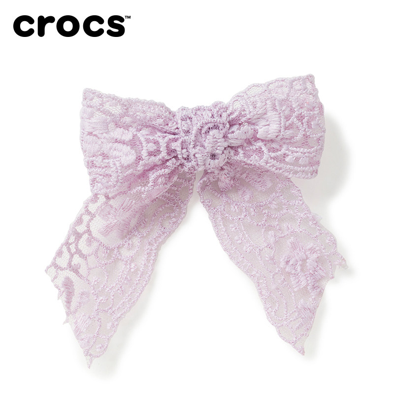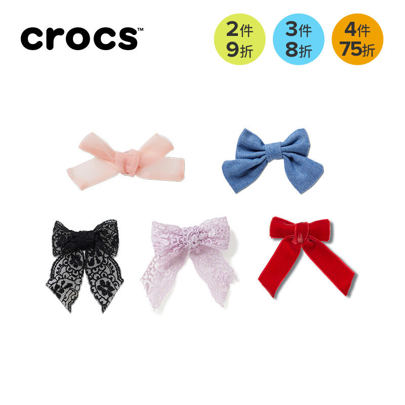 Crocs卡骆驰智必星配件洞洞鞋花 粉色纱质蝴蝶结 牛仔布蝴蝶结