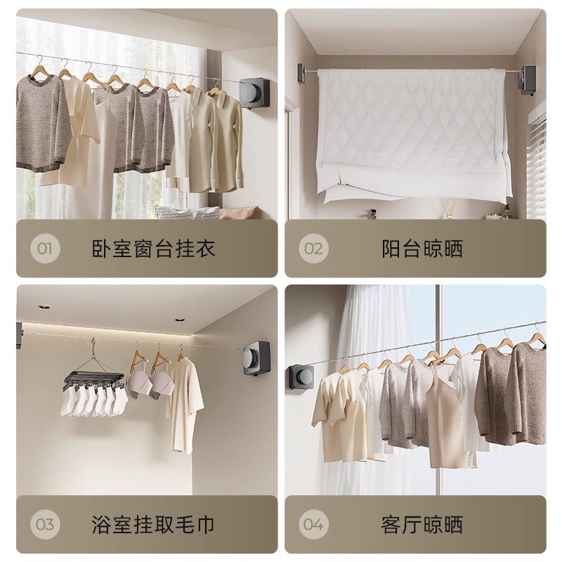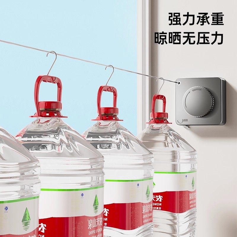 隐形固定晾衣绳室内免打孔卫生间晾衣服神器阳台钢丝绳晾衣架伸缩