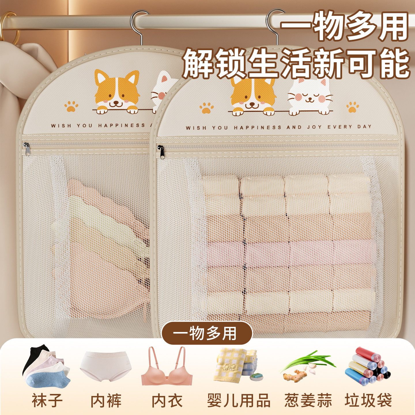 袜子收纳袋宿舍衣柜悬挂式衣物内衣内裤挂袋网兜床头床边整理神器