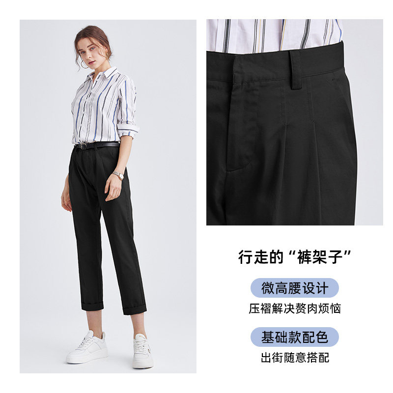西装裤女春夏职业正装藏青蓝黑高腰显瘦九分休闲加绒直筒工作裤子