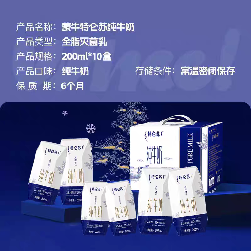 【3月产】蒙牛特仑苏纯牛奶200ml*10盒3.6g优质蛋白原生高钙