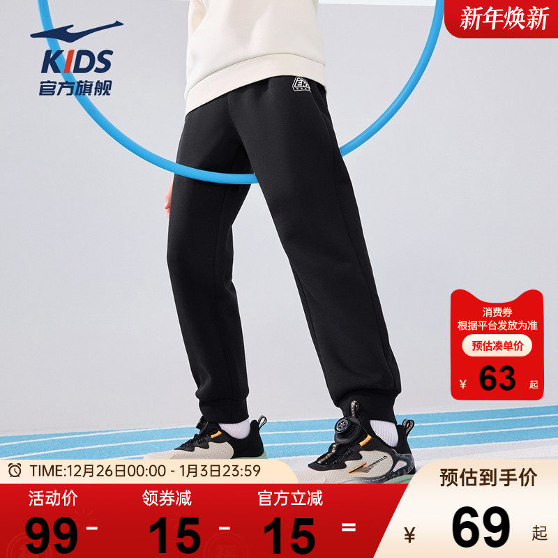 鸿星尔克童装儿童运动长裤春秋季中大童针织卫裤秋季休闲男童裤子