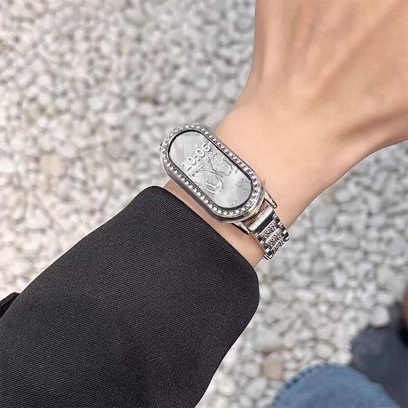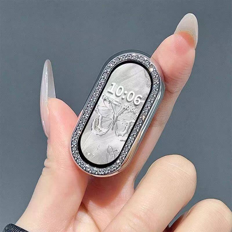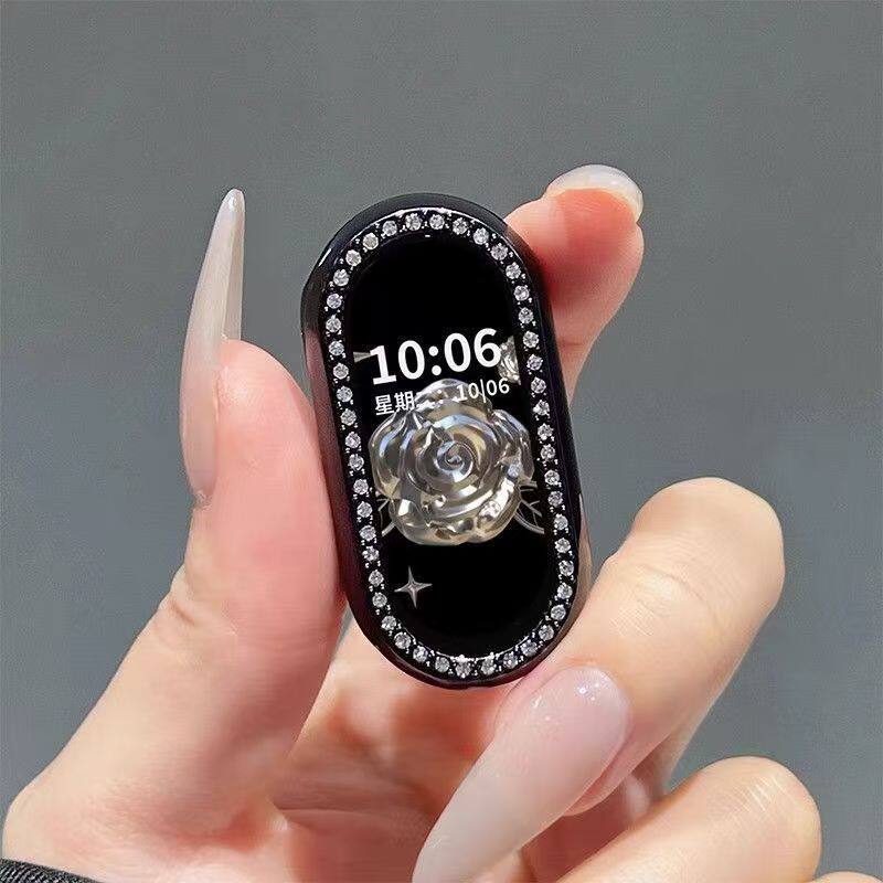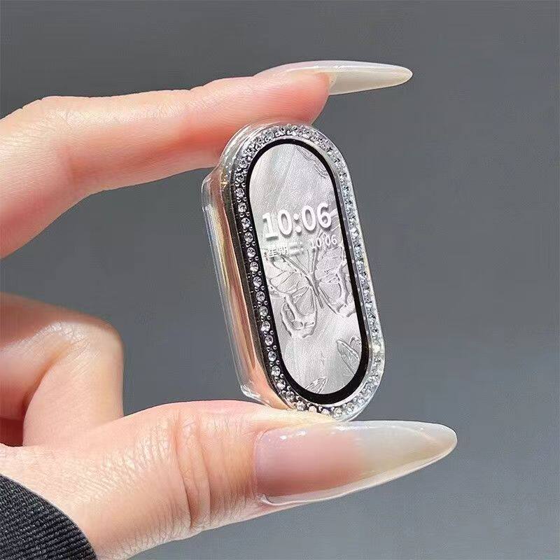 适用小米手环保护壳10xiaomiband9镶钻半包表壳NFC版壳膜一体小米运动手表8代钢化膜防摔套黑色边框硅胶透明
