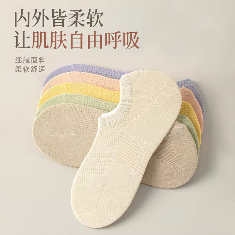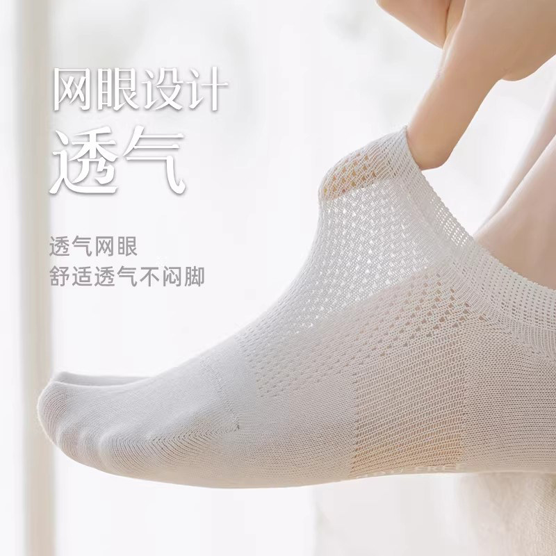 禾素时代船袜男士防臭袜网眼不掉跟透气棉袜女抗菌袜夏秋薄款袜子