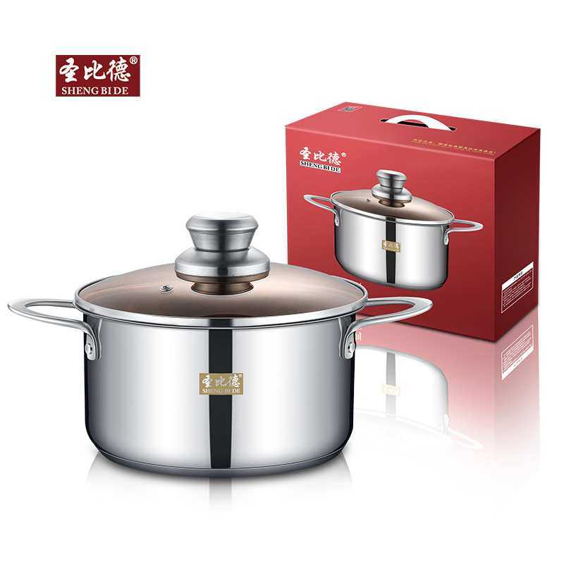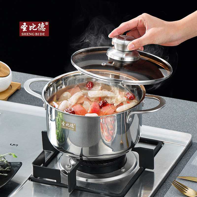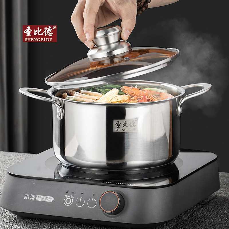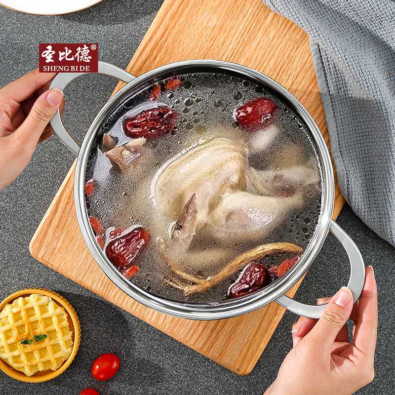 圣比德不锈钢304汤锅韩式家用汤煲 不锈钢双耳汤锅厨房锅具煮奶锅