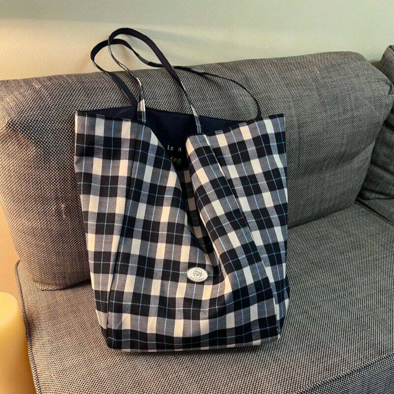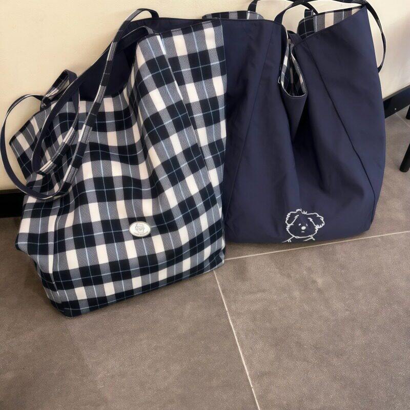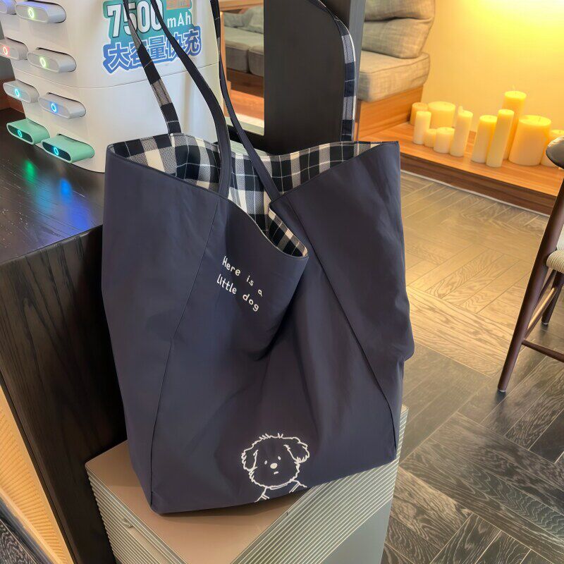 【出门包包好物】日系潦草小狗双面帆布包大容量格子包百搭单肩包