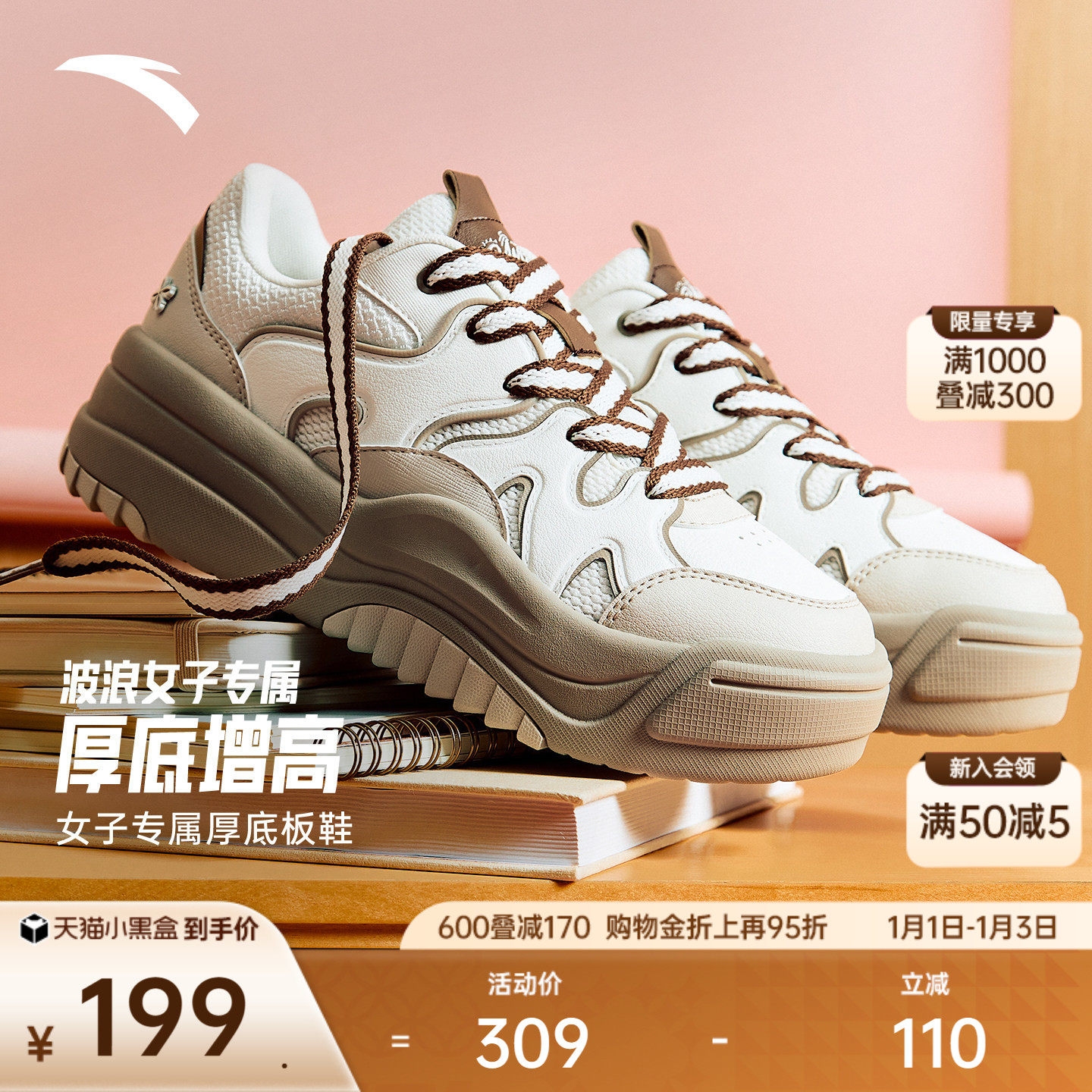 安踏波浪鞋丨厚底增高板鞋女冬季潮流面包鞋百搭软底舒适运动鞋子