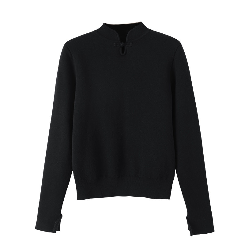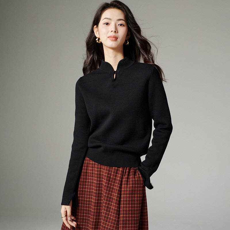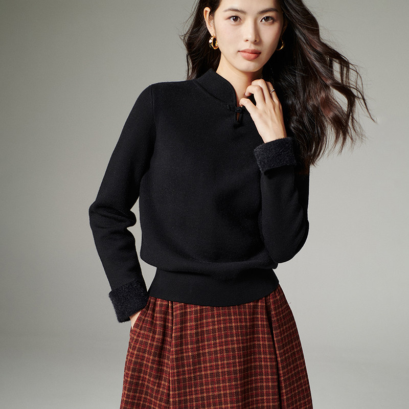 晚白2025年冬新款复古优雅端庄上衣纯色气质加绒加厚百搭针织衫女