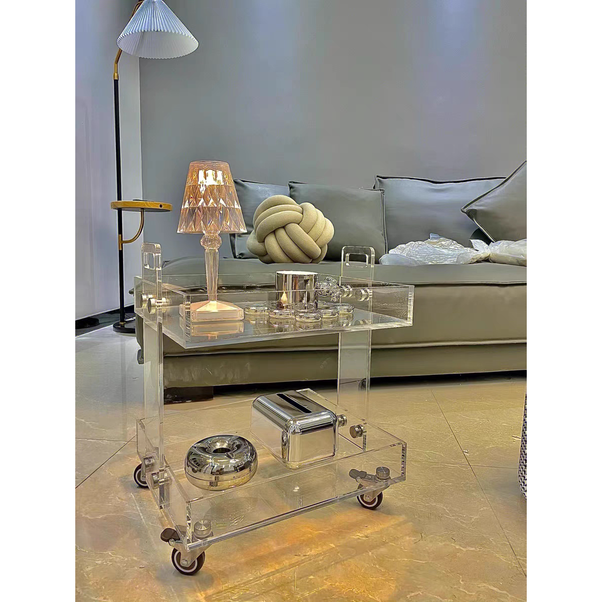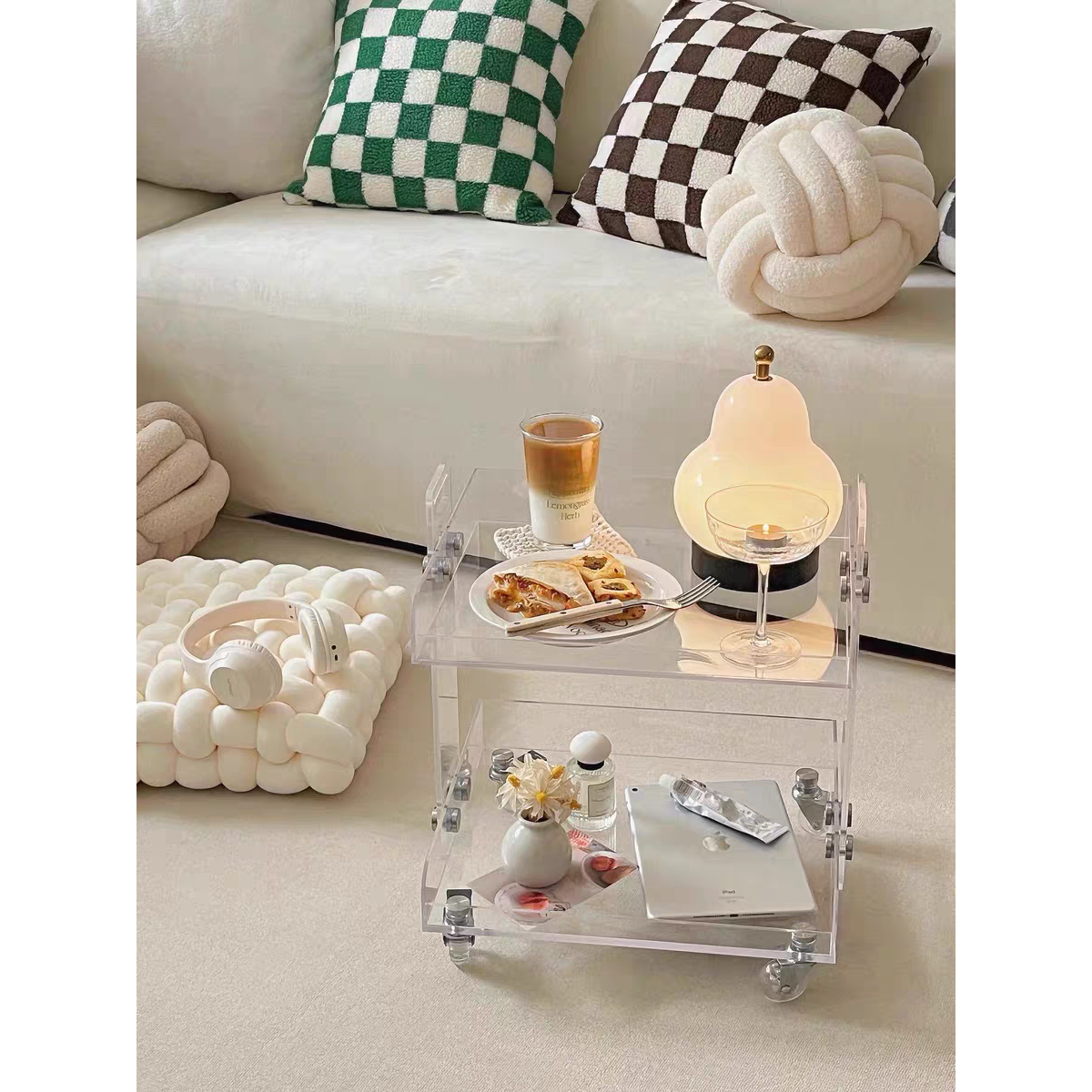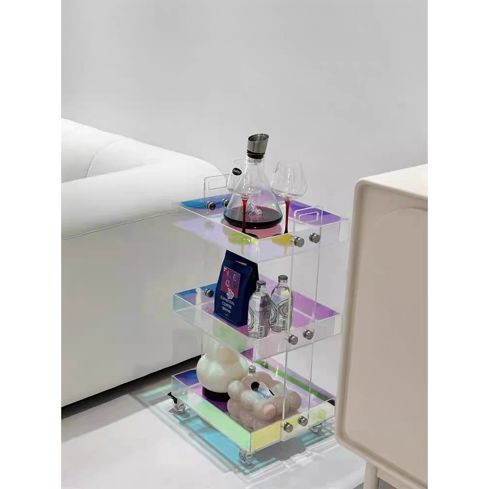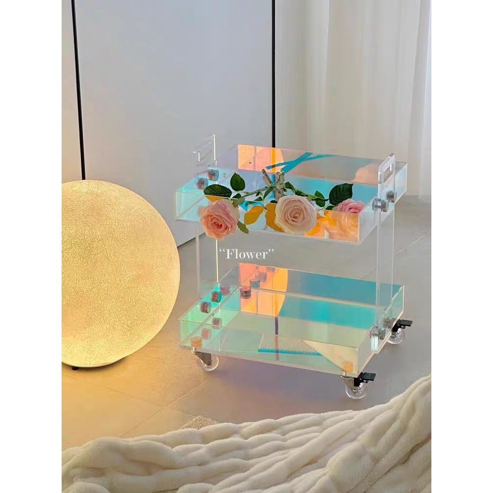 d亚克力边几角几Ins风透明可移动小推车床头柜轻奢茶几多层置物架