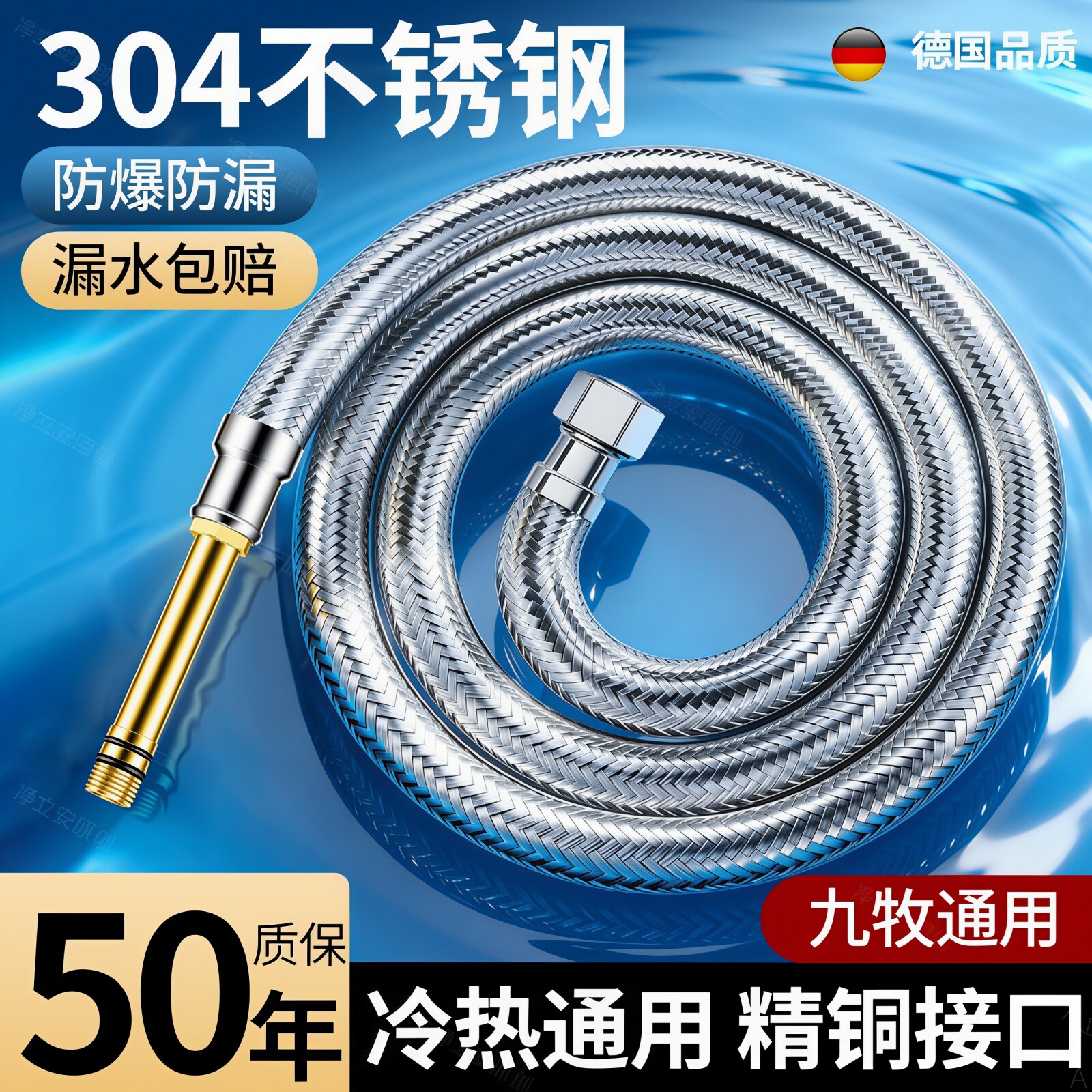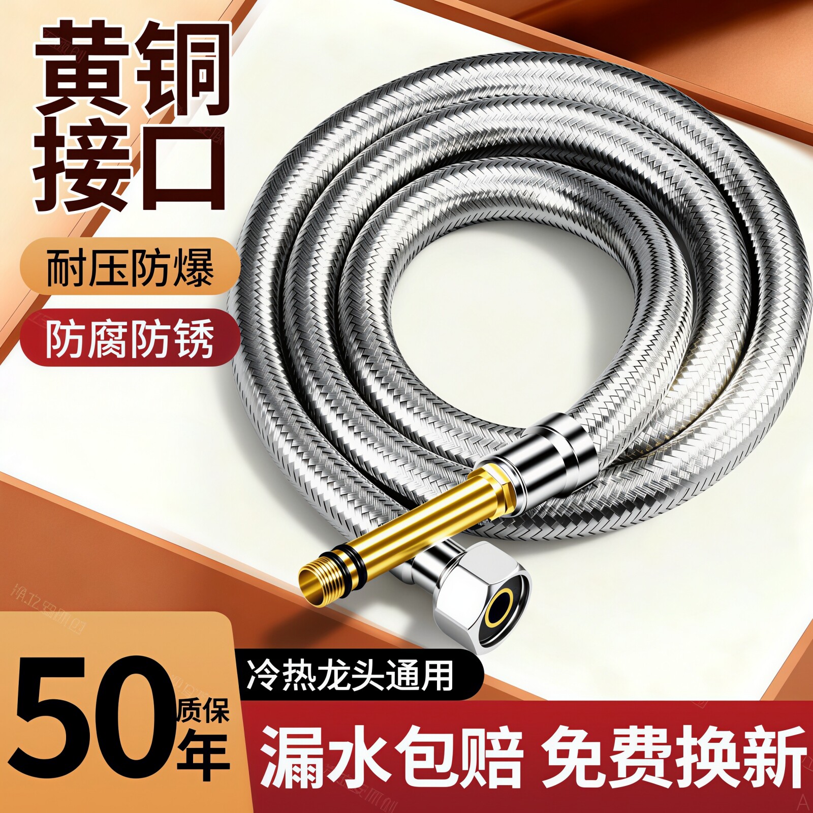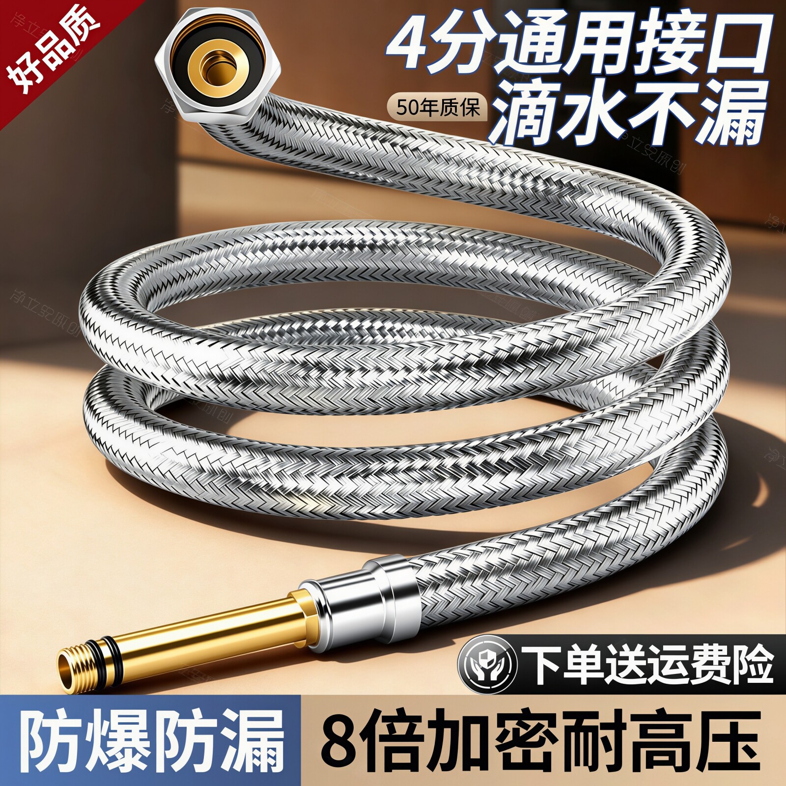 厨房冷热水龙头软管进水管防爆不锈钢编织尖头加长连接管热水器