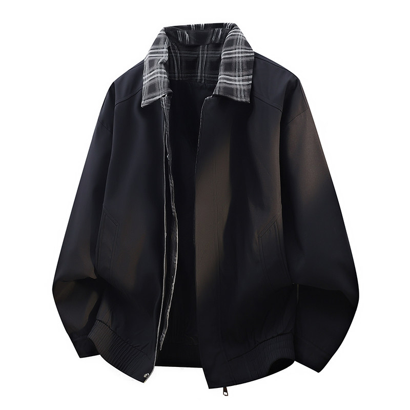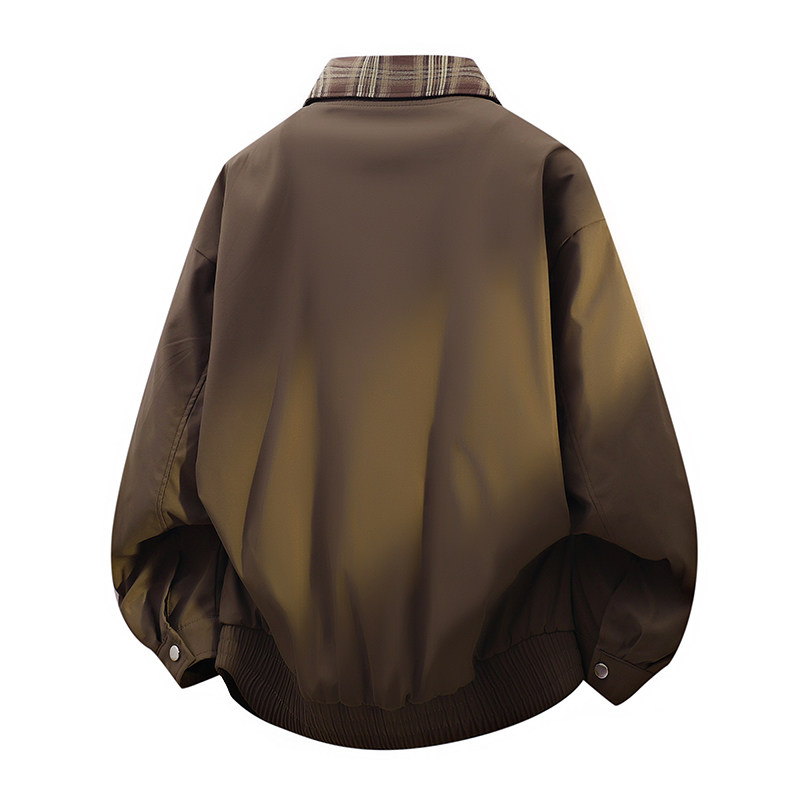 回力美式假两件格纹夹克男士春秋季2026新款宽松休闲男生翻领外套