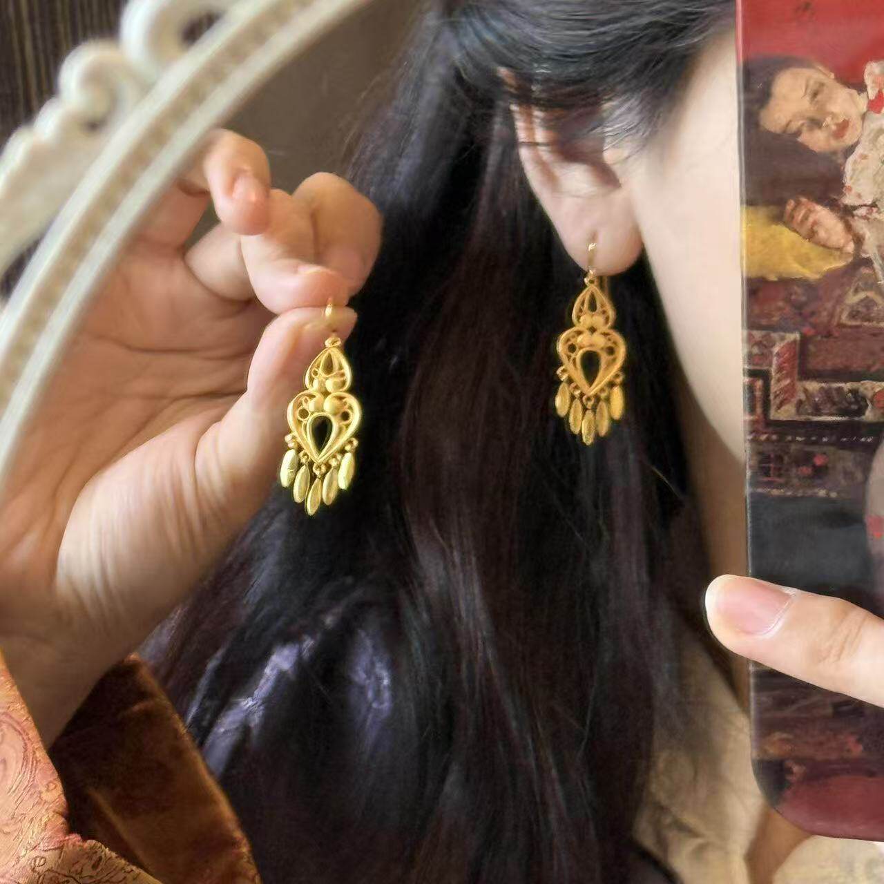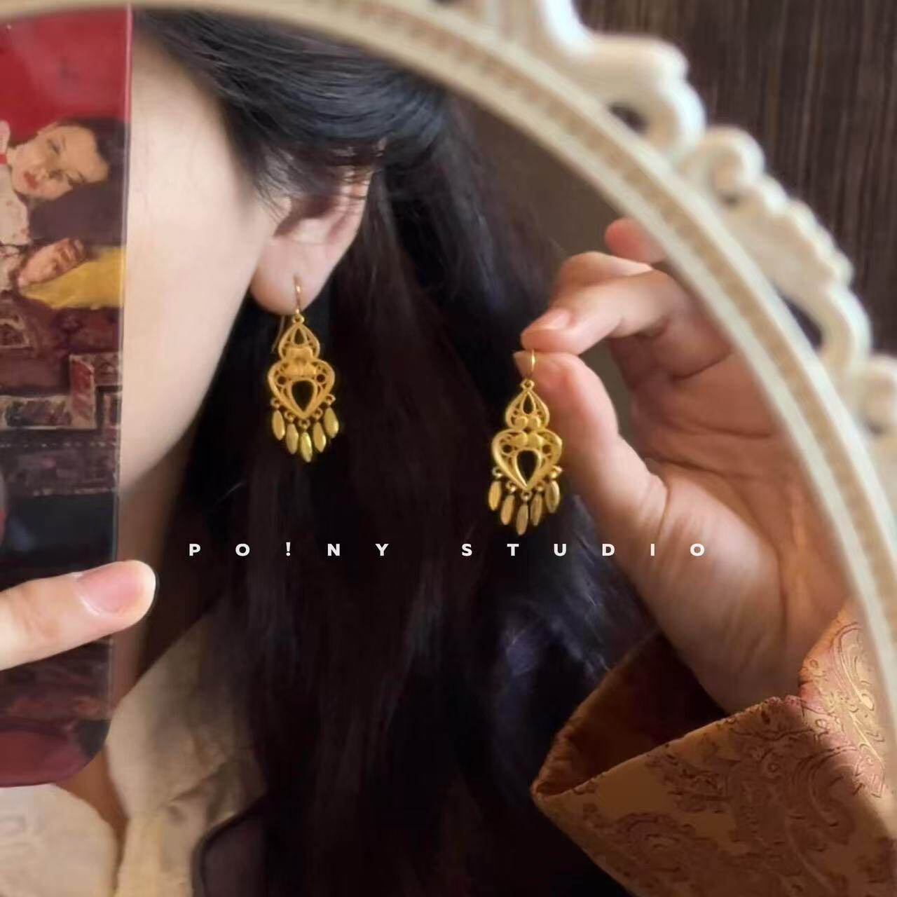 2026新款民族风耳环新中式耳钉轻奢气质耳坠设计感百搭耳饰品流苏