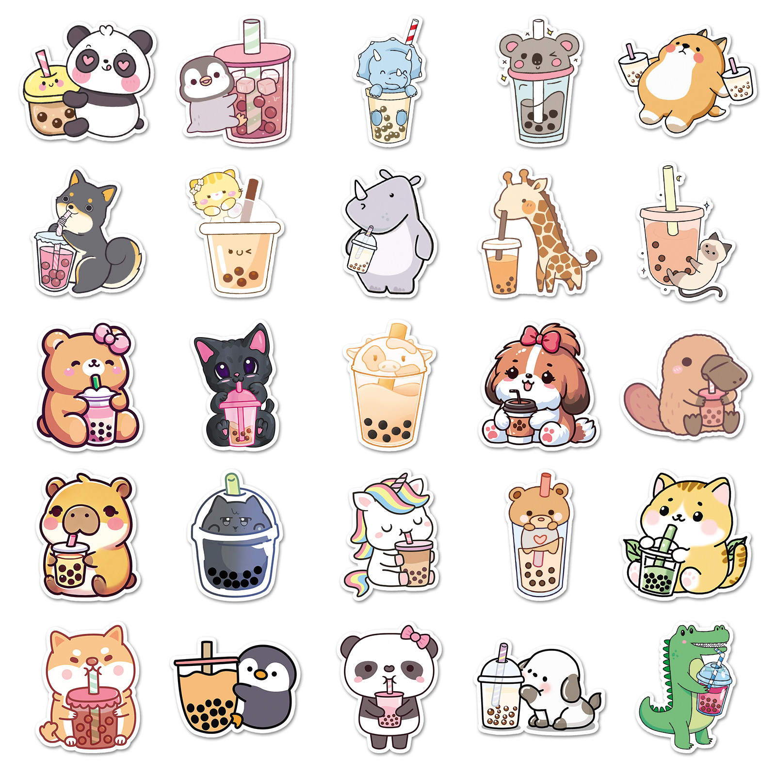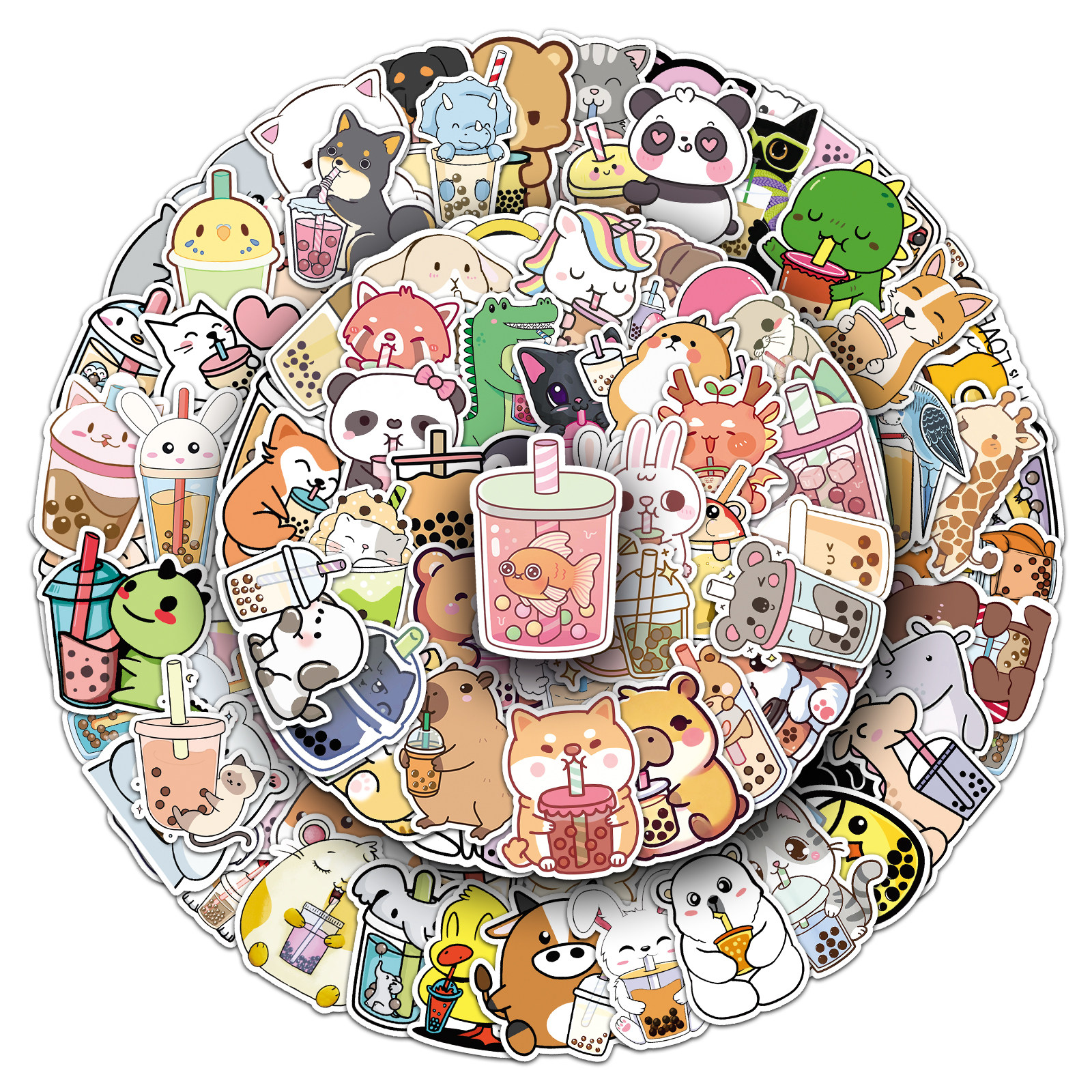 100张小动物奶茶杯贴纸可爱卡通宠物咕卡手帐素材防水涂鸦装饰平板电脑自行车玻璃吉他文具手机行李箱DIY贴纸