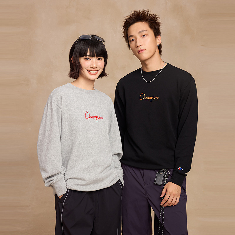 Champion冠军圆领卫衣男2025秋季新款女情侣印花字母休闲风打底衫