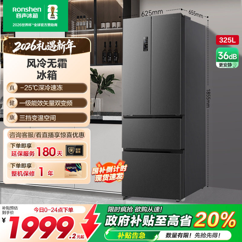 容声325L法式对开多门四门一级变频电冰箱小户型家用以旧换新补贴
