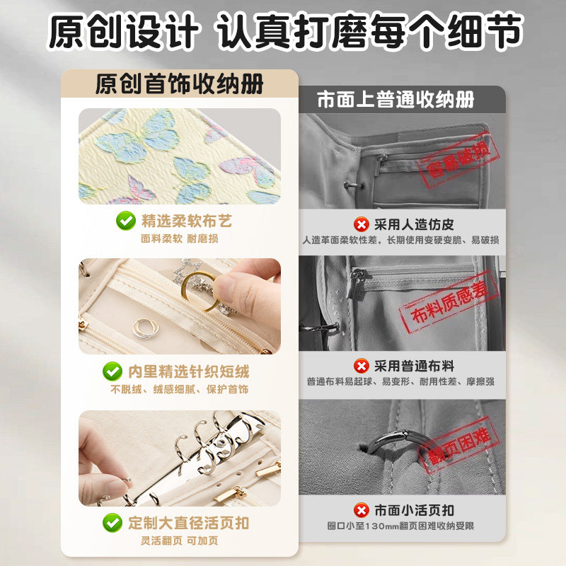 黄金首饰收纳册防氧化高档饰品盒珠宝便携旅行绒布收纳包戒指项链耳环手链密封袋分格活页书保存神器带拉链