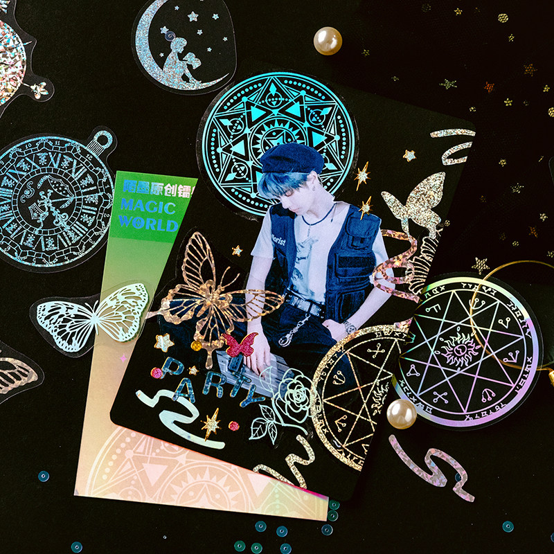 闪光梦境镭射彩金贴纸包 梦幻蝴蝶手账diy装饰手机壳PET防水贴画