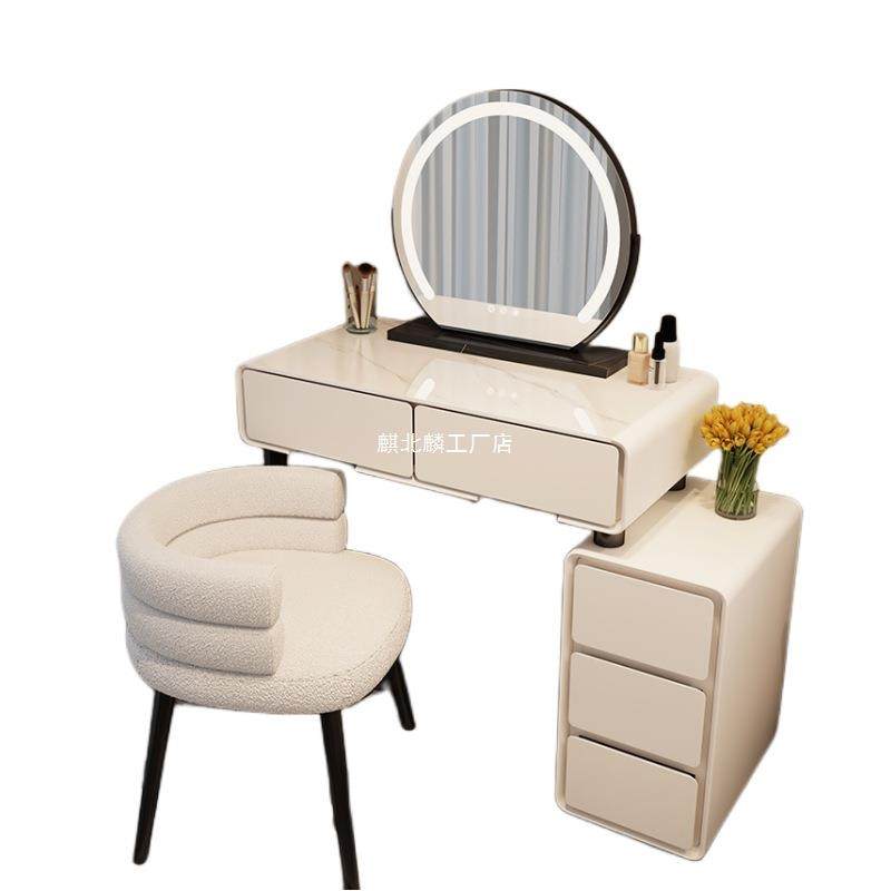 梳妆台小户型法式奶油风卧室现代简约化妆桌玻璃化妆台柜斗柜一体
