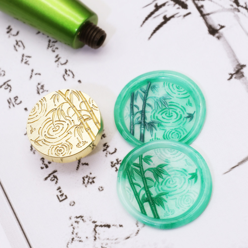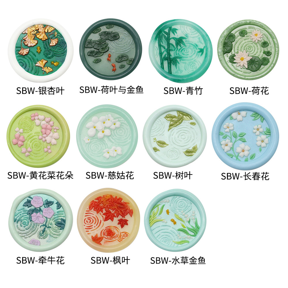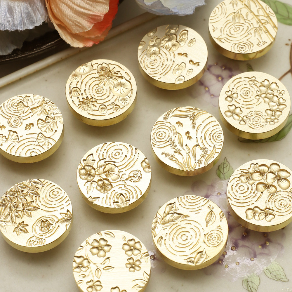 欧彩火漆印章章头荷叶金鱼涟漪火漆铜头涟漪枫叶竹文创浮雕印头